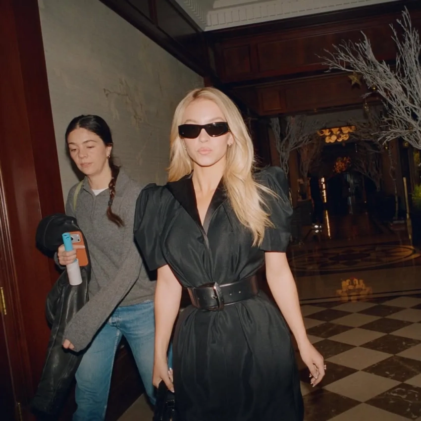 Актриса поделилась снимками с пресс-тура в честь выхода своего нового фильма "Горничная". На них она запечатлена с коллегой Амандой Сейфрид во время мероприятий, а также без одежды. Суини, которая не раз выступала против объективации своего тела, снялась обнажённой во время подготовки к красной дорожке. На фото она позирует в серьгах с бриллиантами, прикрывая руками грудь.