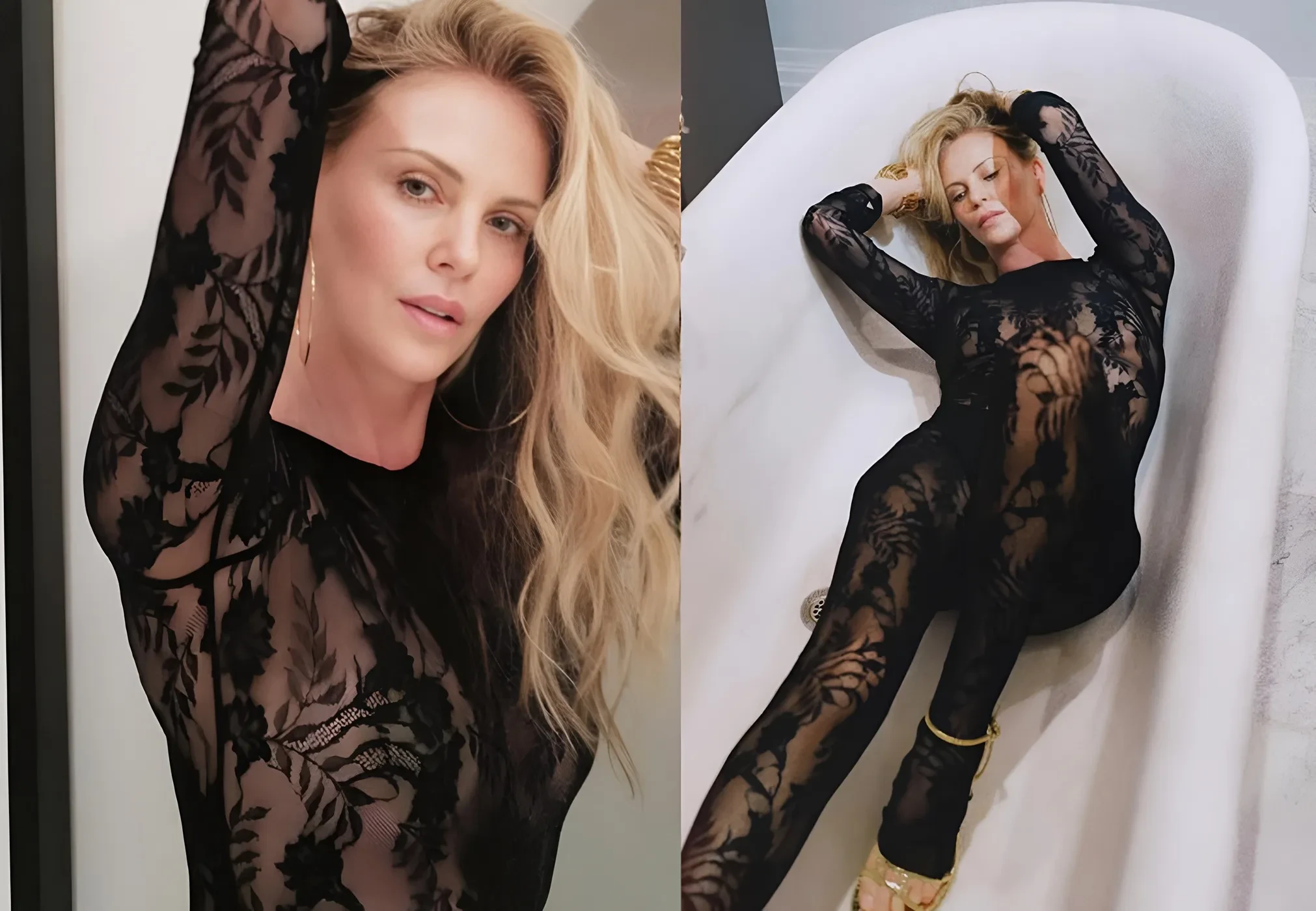 50-летняя Шарлиз Терон снялась в кружевном комбинезоне на голое тело