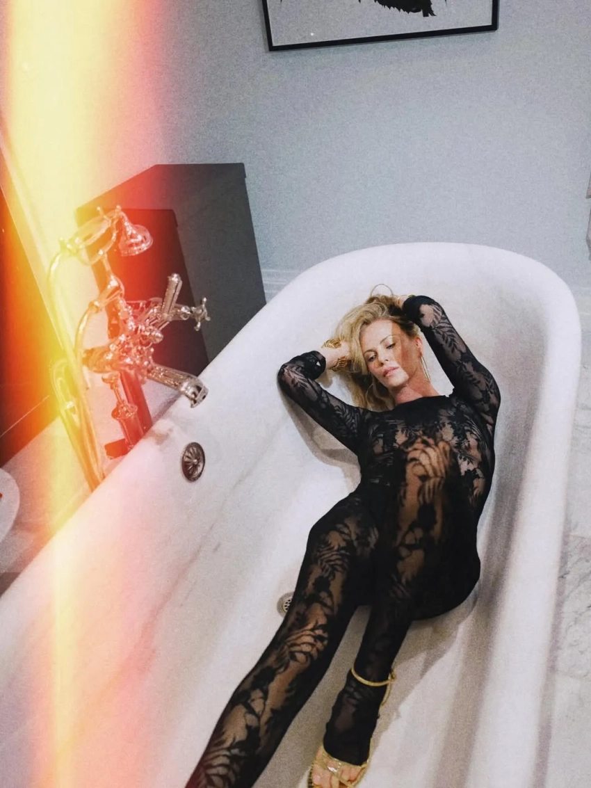 50-летняя Шарлиз Терон снялась в кружевном комбинезоне на голое тело. Снимки она опубликовала в своём инстаграме*, пояснив, что сделала оммаж на культовую фотомодель Джерри Холл, у которой была похожая съёмка.