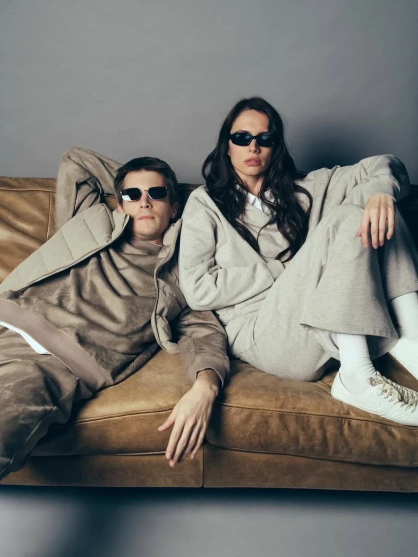 На фото 35-летний Янковский и Пожарская позируют в спортивных и повседневных образах в фотостудии. "Оставайтесь в уюте и веселье. С наступающими", — написала Пожарская.