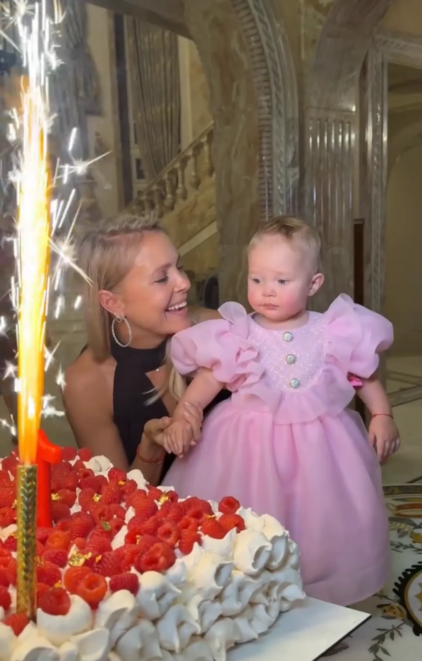 На празднике именинница была одета в розовое платье с блестящими пуговицами, а её мать Виктория позировала рядом в коричневом наряде и бриллиантовых серьгах. Нина задула свечу на праздничном торте вместе со своей 21-летней сестрой Даной и её дочерью Миллой.