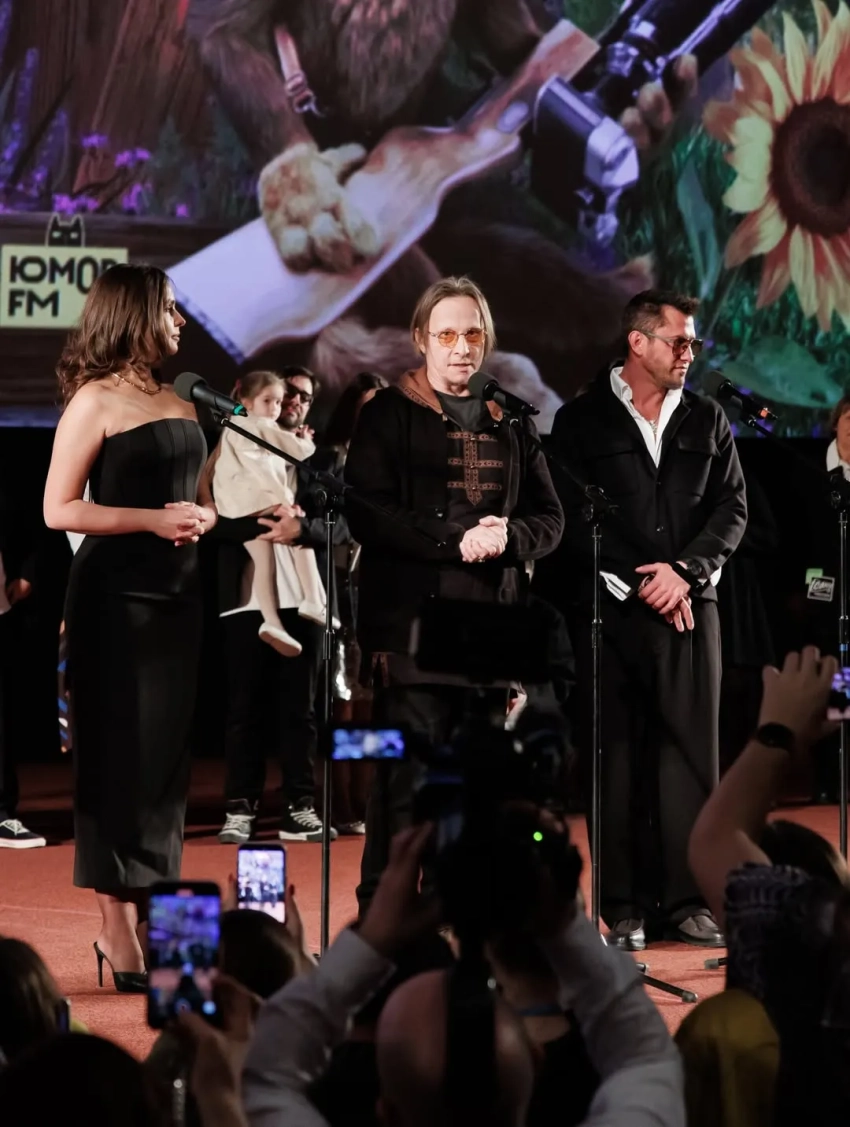 50-летняя Тина Канделаки вышла на дорожку в белом жакете и чёрной юбке, дополнив образ лаковыми сапогами и сумкой Schiaparelli. 30-летняя исполнительница одной из главных ролей в фильме и жена режиссёра Сарика Андреасяна Лиза Моряк пришла в чёрном платье и туфлях на каблуках в компании мужа и дочерей.