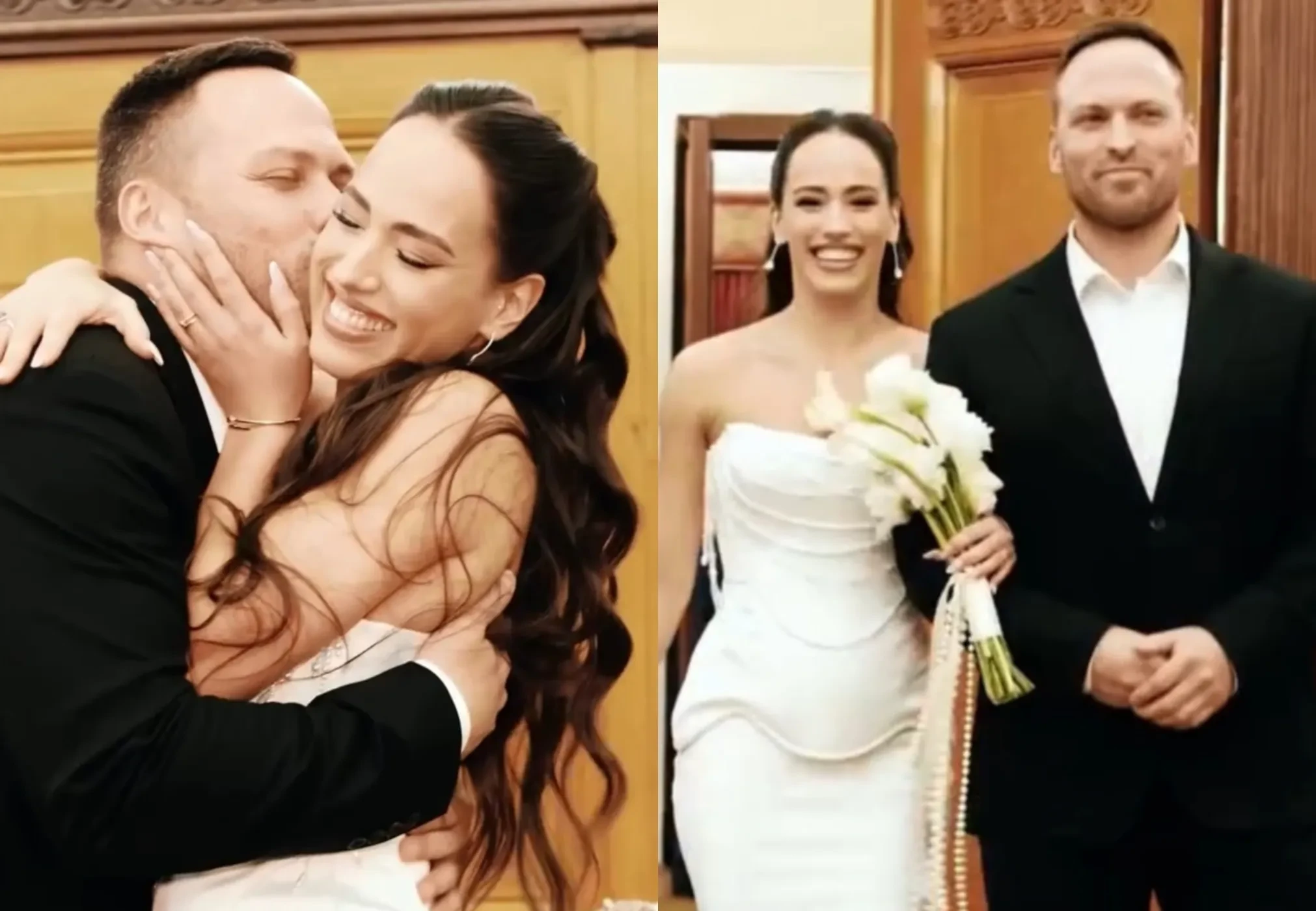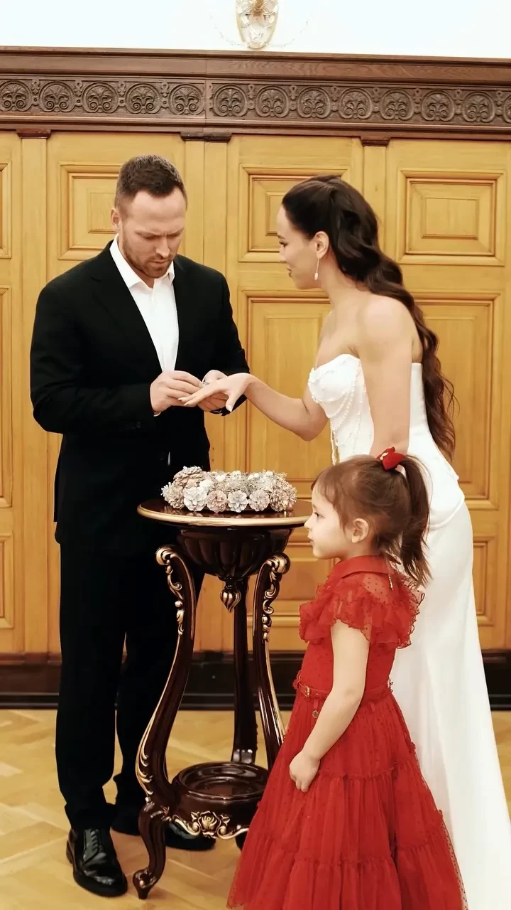Церемония прошла в Грибоедовском ЗАГСе Москвы в кругу друзей и близких. Жених выбрал классический чёрный костюм, а невеста появилась в корсетном белом платье. К алтарю пару сопровождала четырёхлетняя дочь Алексея от предыдущих отношений Милана.