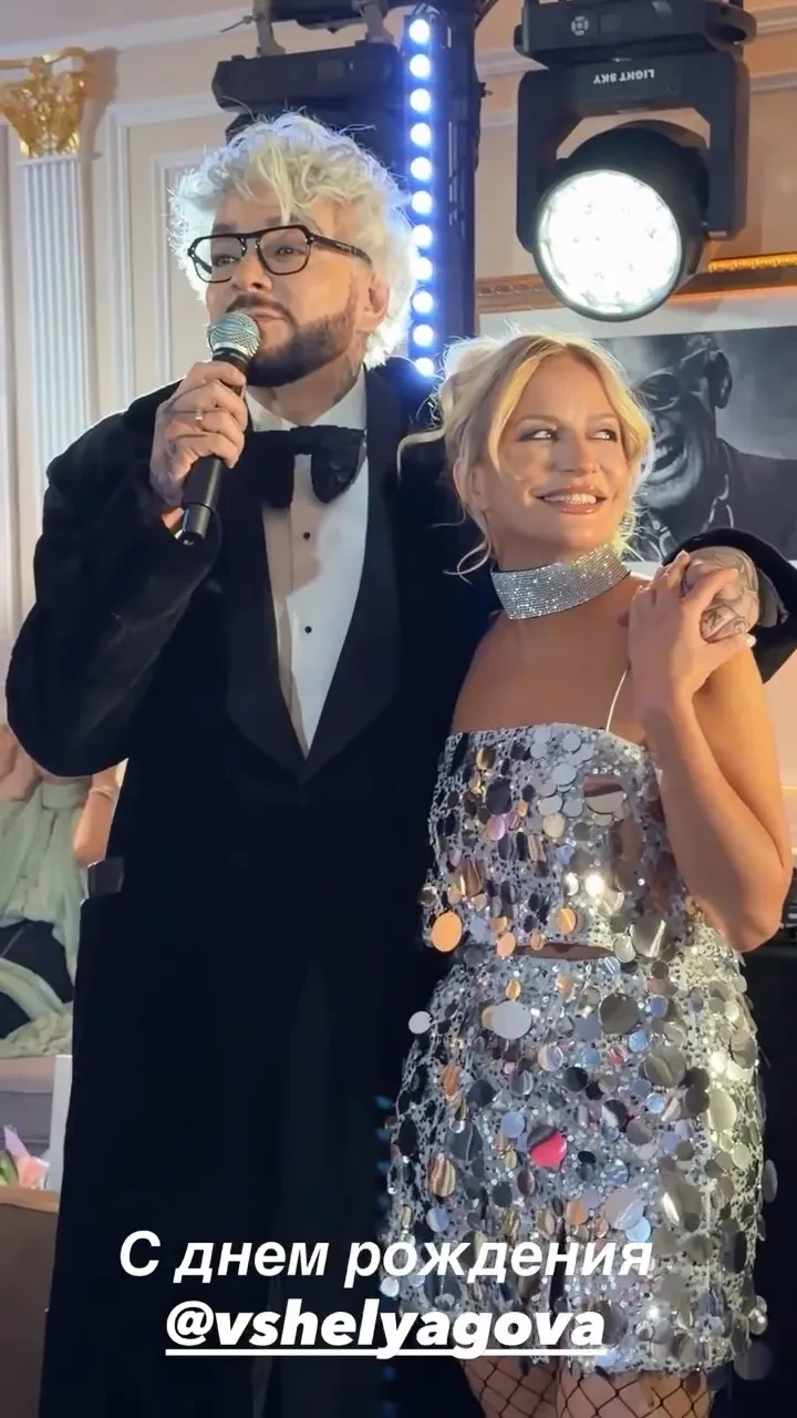 Дебют в роли певицы, четырёхъярусный торт с цветами и платье от Versace: Виктория Шелягова отметила 53-летие в компании Филиппа Киркорова, Андрея Малахова и Жасмин