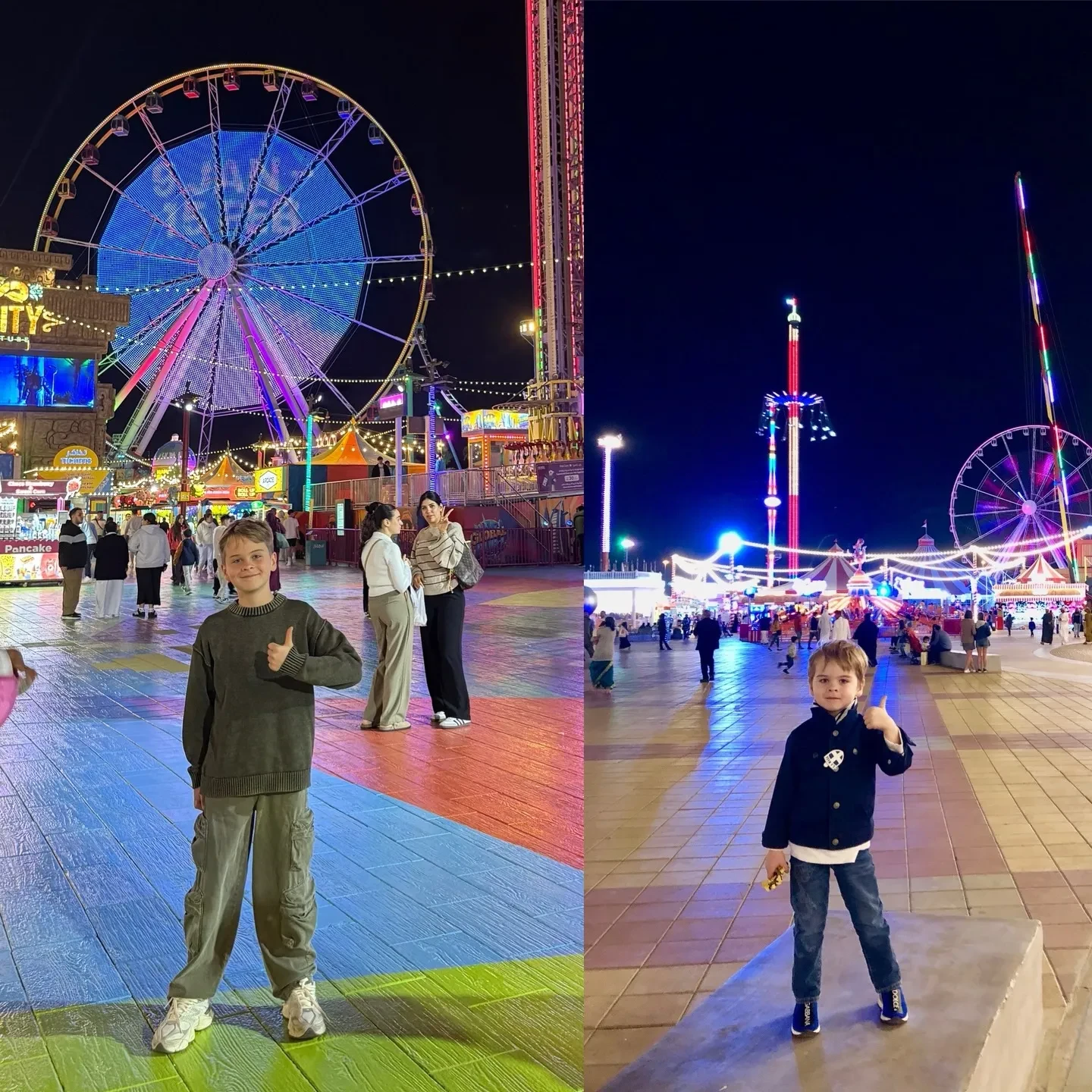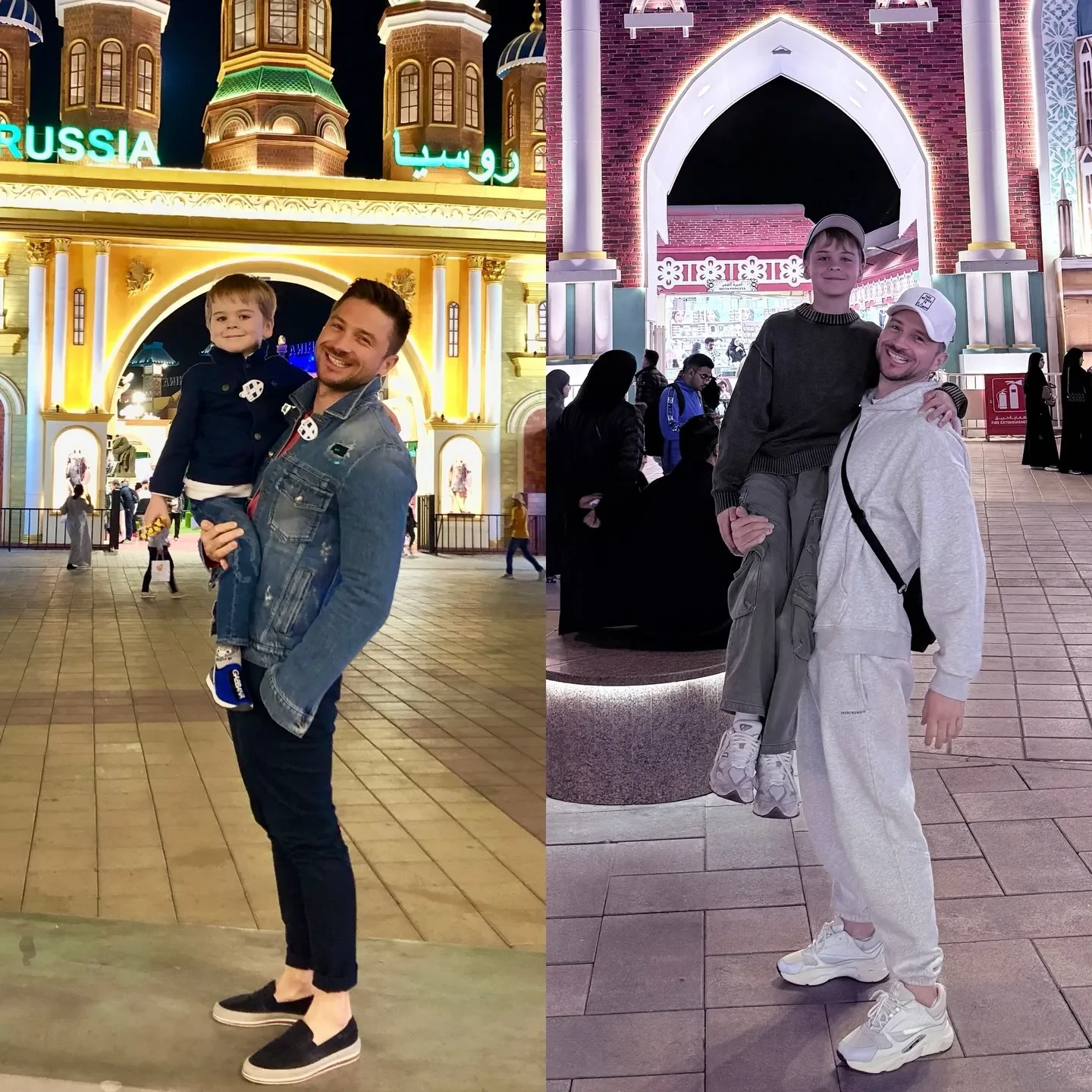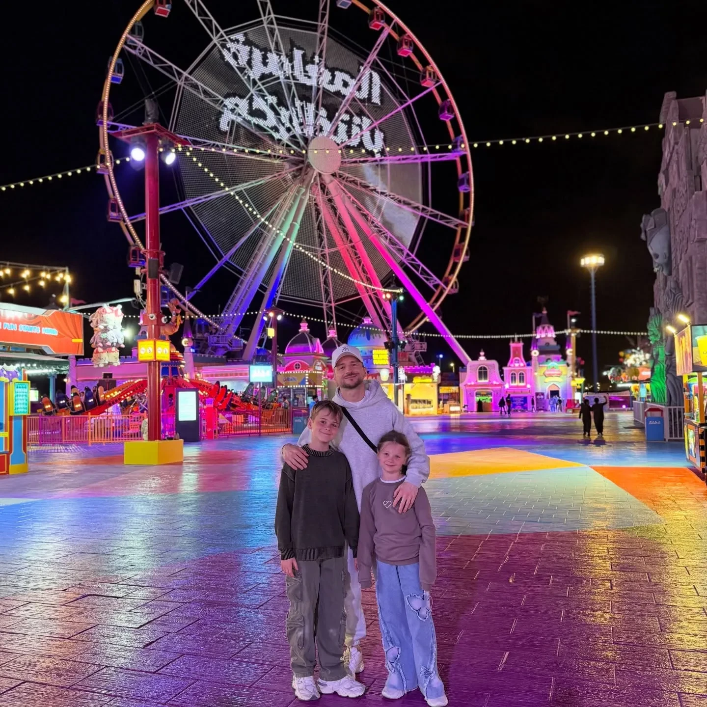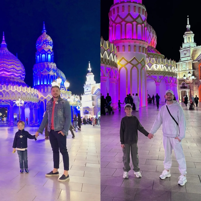 Сергей Лазарев с детьмиСергей также рассказал, что вместе с ними отдыхает его мать Валентина. Вся семья сходила в парк аттракционов Global Village, который артист посещал с сыном в 2019 году. Он показал, как вырос Никита, приложив коллажи из архивных и новых фото, сделанных в одинаковых локациях.