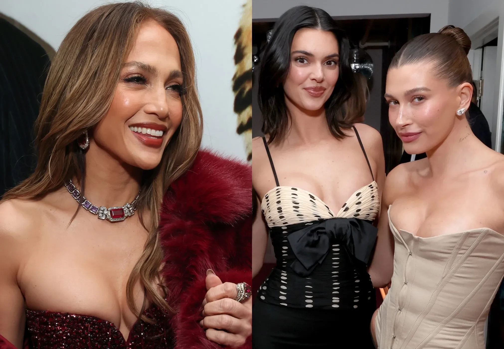 56-летняя Дженнифер Лопес пришла на вечеринку в блестящем бордовом платье и шубе в тон, а Хейли Бибер надела бежевый корсет с брюками. 37-летняя Эмма Стоун блистала в полупрозрачной юбке и чёрной блузе, а 28-летняя Сидни Суини вышла в свет в более "закрытом" платье, чем все привыкли. Кейт Хадсон появилась в белом кружевном платье с декольте, а 59-летняя Синди Кроуфорд и её дочь Кайя Гербер позировали в образах total black.