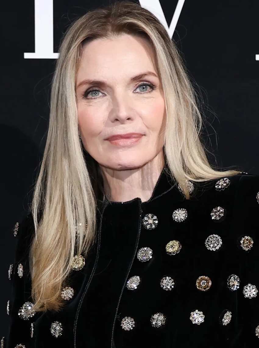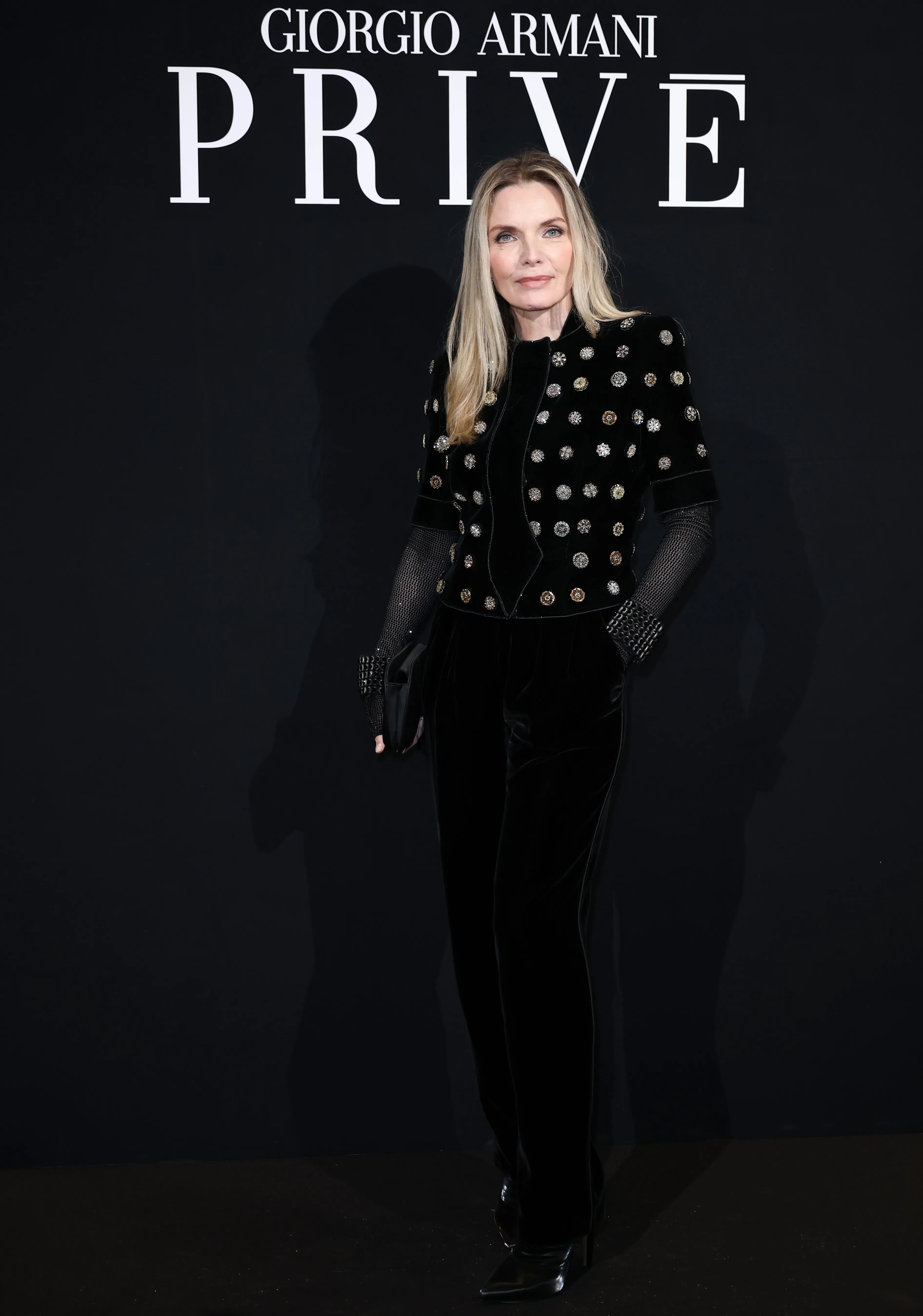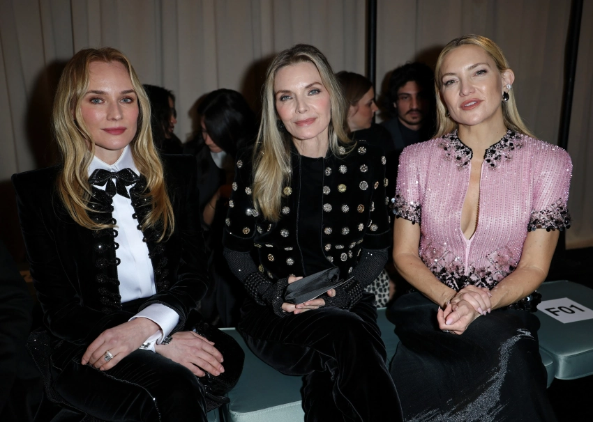 46-летняя Кейт Хадсон пришла на показ в шёлковых брюках и розовом топе с пайетками, а 67-летняя Мишель Пфайффер — в чёрном бархатном костюме.