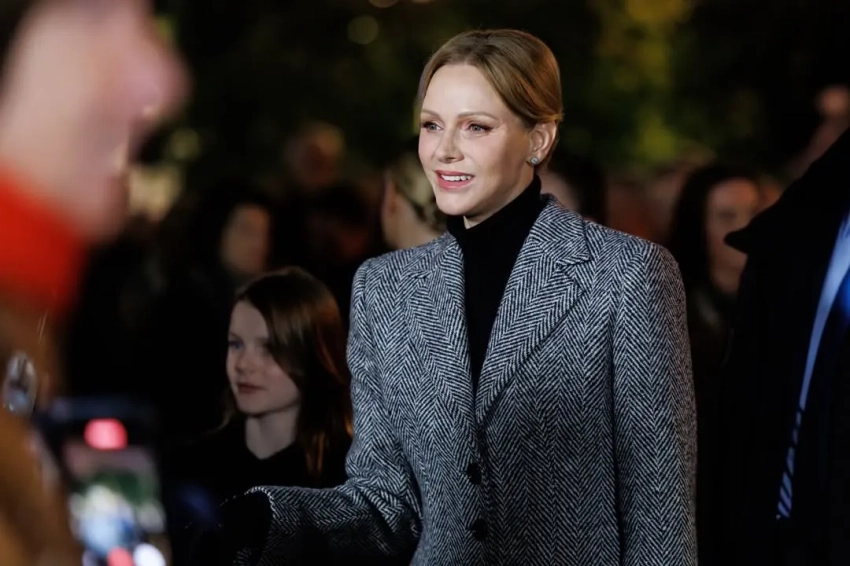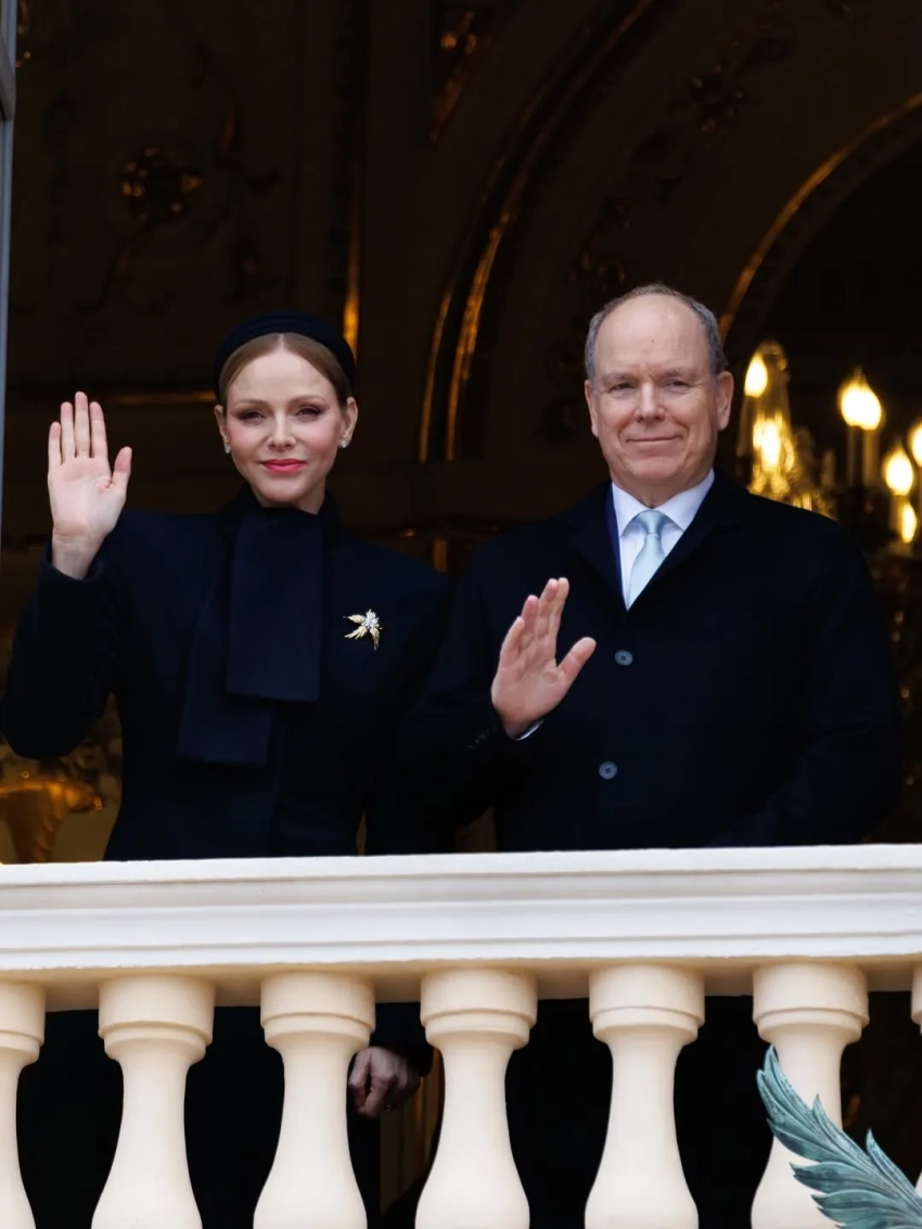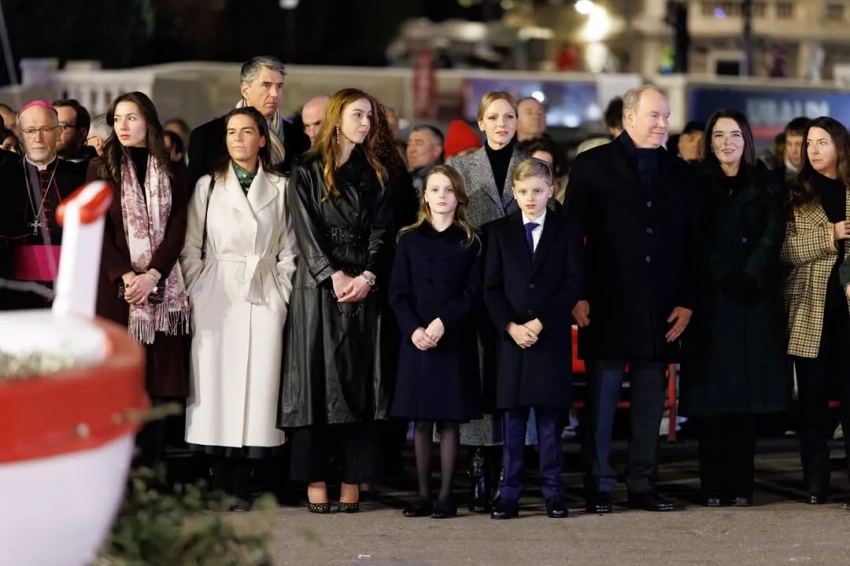 48-летняя княгиня Шарлен для выхода в свет выбрала серое пальто и чёрные кожаные перчатки, дополнив образ сумкой в тон. 11-летние принц Жак и принцесса Габриэлла, а также князь Альбер надели тёмно-синие пальто.