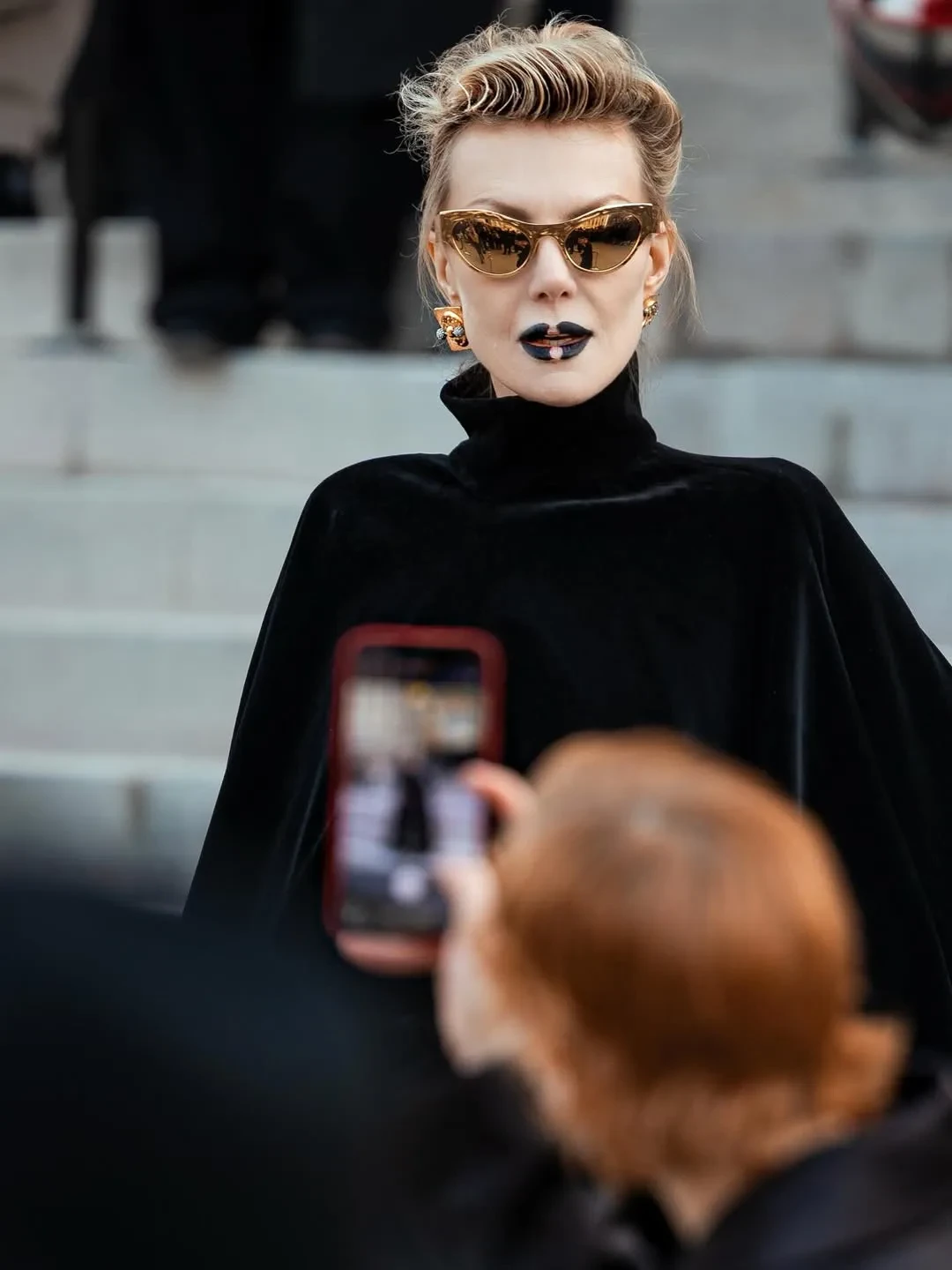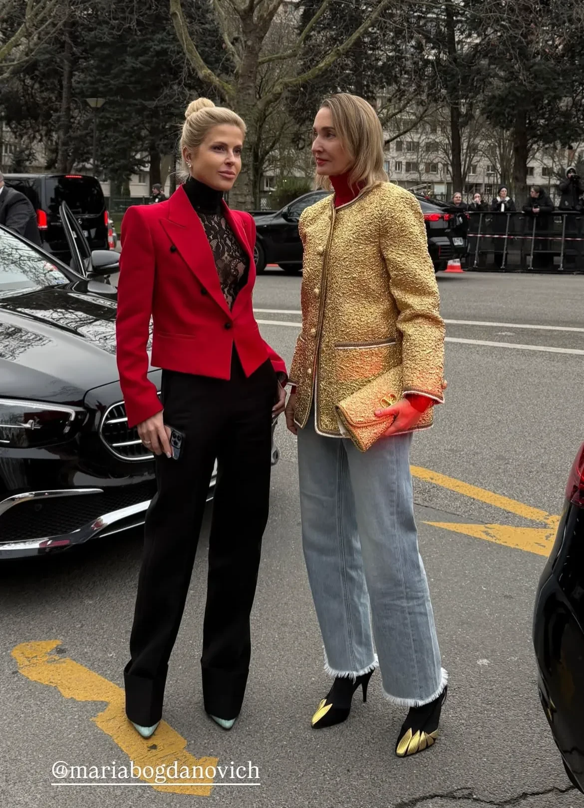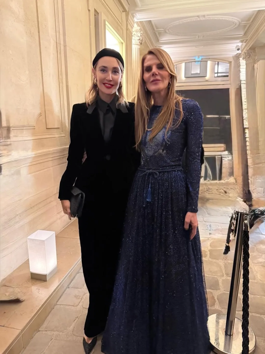 Рената Литвинова в чёрном кейпе и с макияжем в золотых тонах посетила шоу Schiaparelli, где встретилась со стилисткой Витой Клац. Снежанна Георгиева с дочерью Софьей посетили показ Valentino, где также были Оксана Бондаренко, Мария Богданович и многочисленные звёзды.