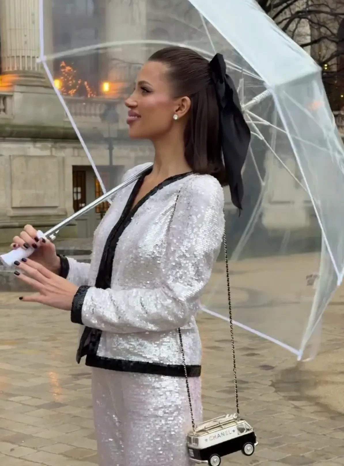 Бывшая жена экс-главы "Банка Москвы" Андрея Бородина Татьяна Корсакова появилась на показе Robert Wun в платье с декольте и посетила показ Schiaparelli в светло-жёлтом тренче. Тем временем звезда "Аноры" Марк Эйдельштейн в костюме в клетку сидел в первом ряду на показе мужской коллекции Saint Laurent, который неожиданно состоялся вне расписания Недели высокой моды.