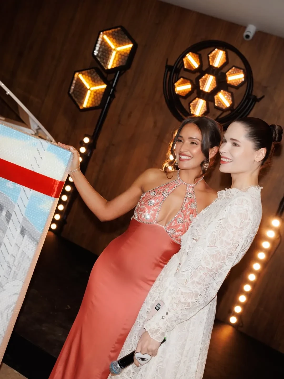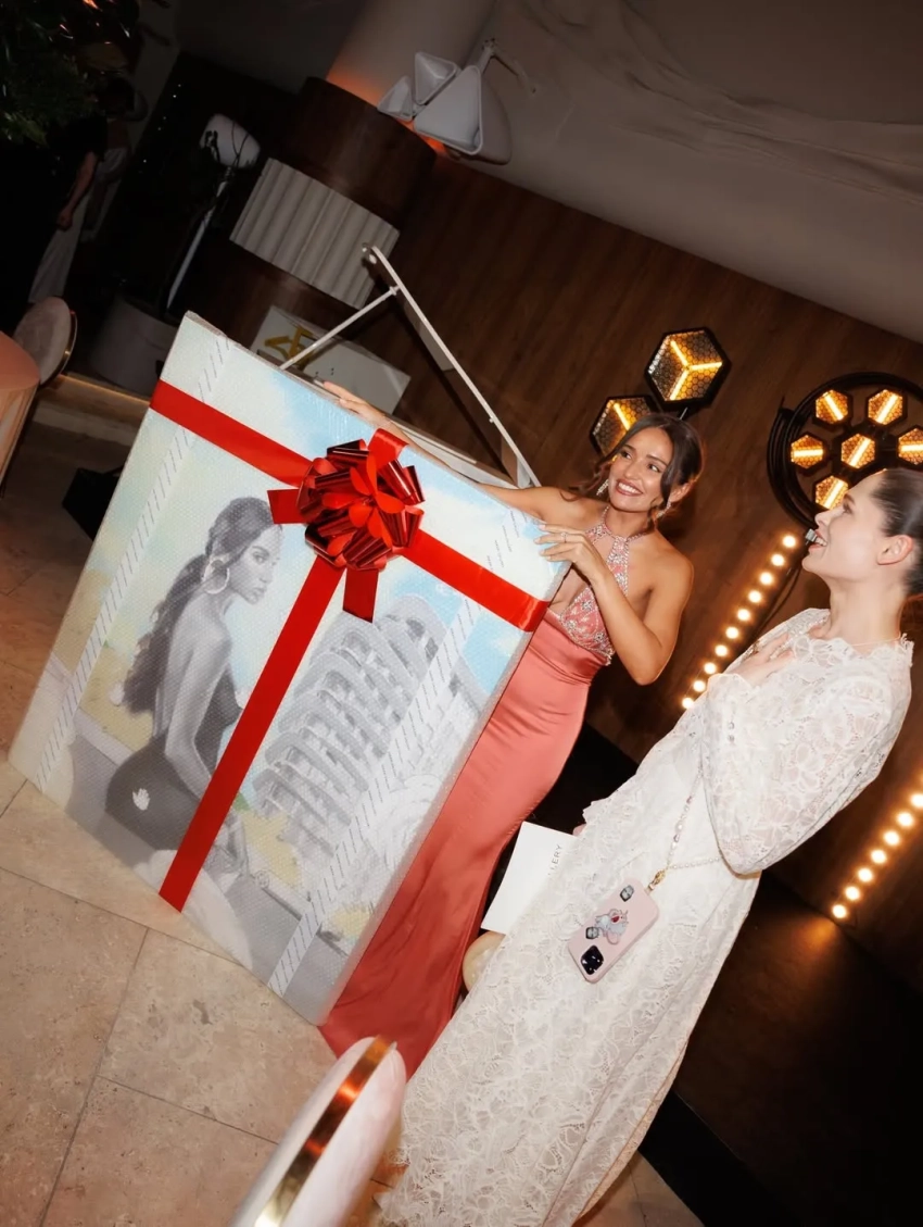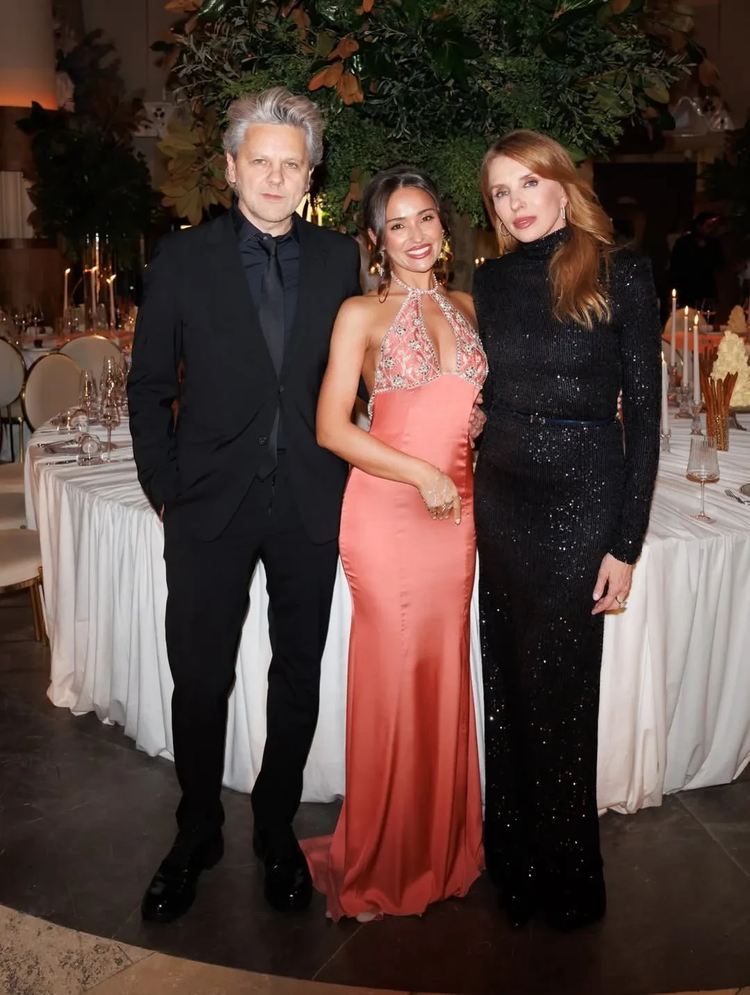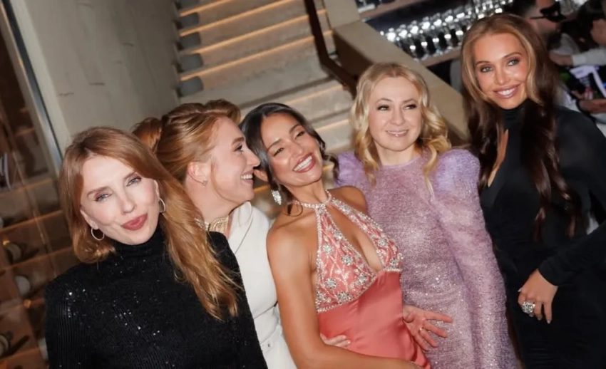 Мельникова появилась перед гостями в платье Mastersuit, расшитом кристаллами. Яна Рудковская надела платье лилового оттенка с сумкой Dior в тон, а Светлана Бондарчук пришла в чёрном. Галеристка и бывшая жена Бориса Белоцерковского Полина Аскери позировала в белом наряде и подарила подруге её портрет.