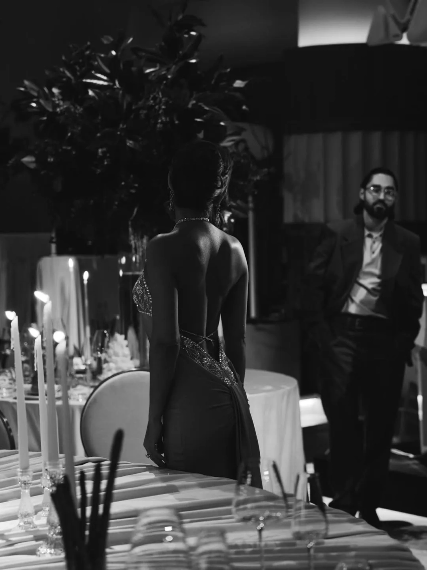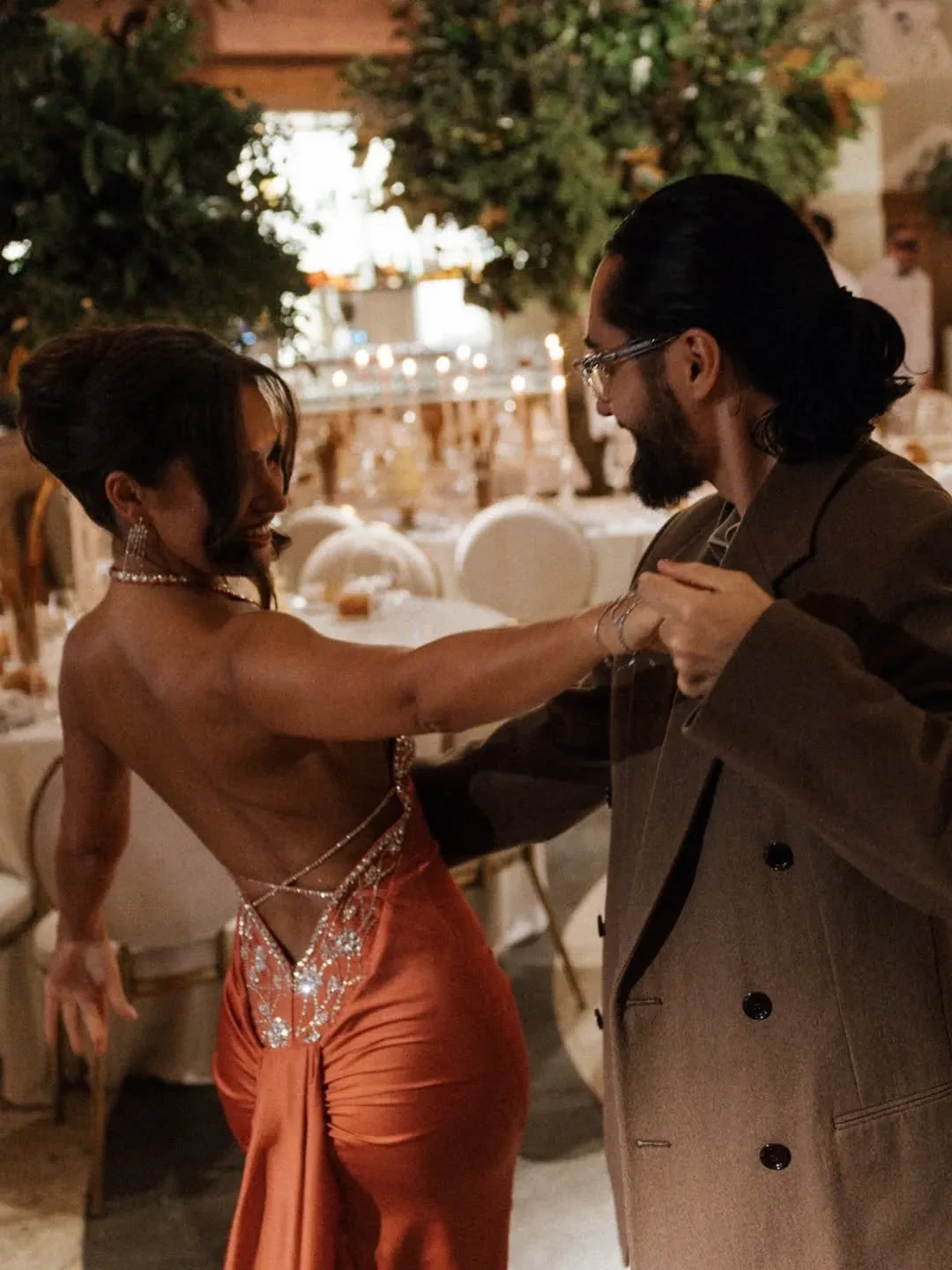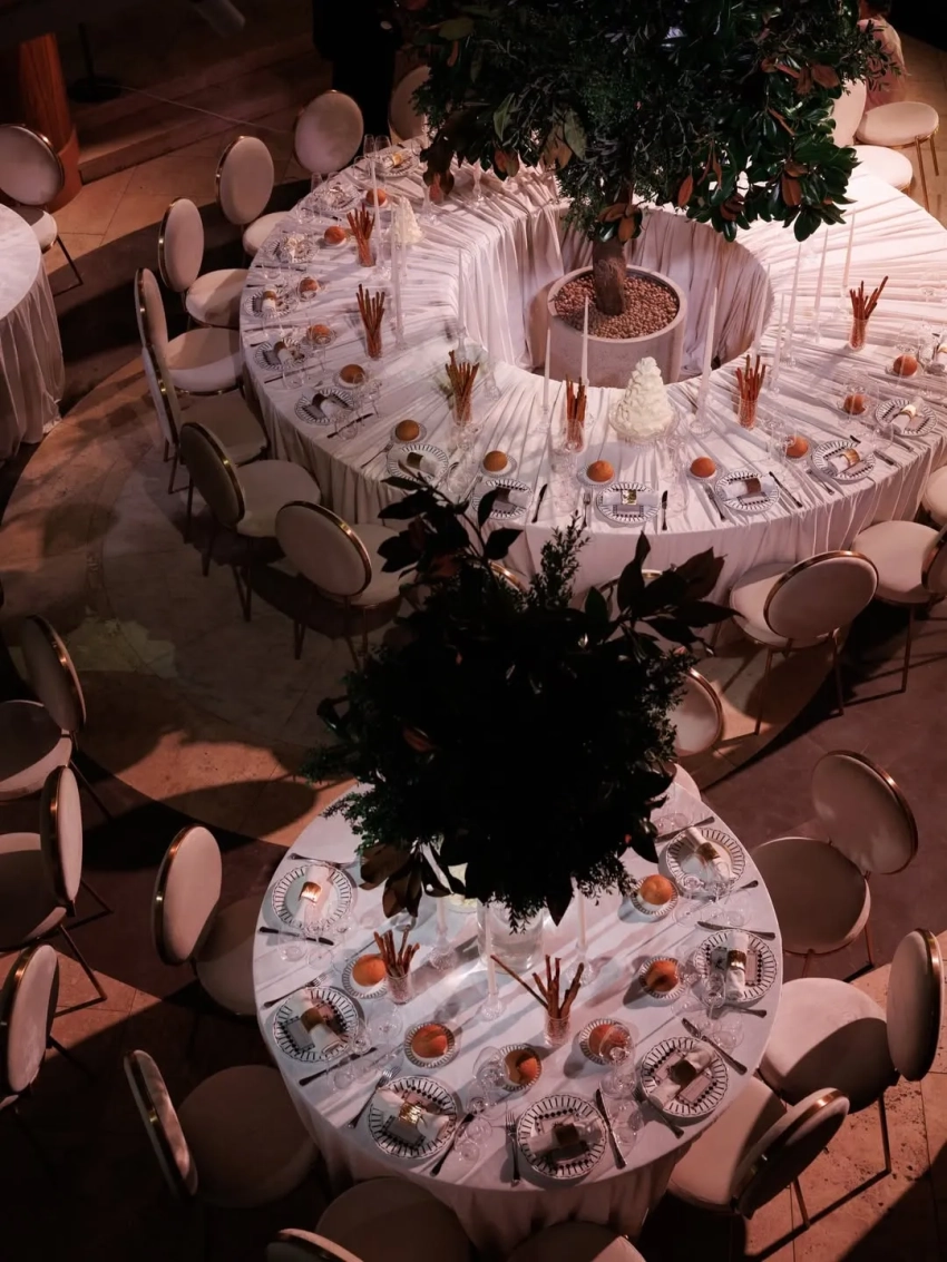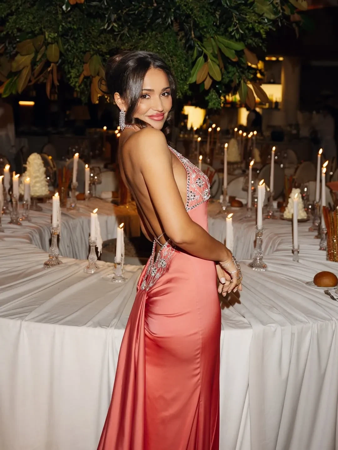 Мельникова появилась перед гостями в платье Mastersuit, расшитом кристаллами. Яна Рудковская надела платье лилового оттенка с сумкой Dior в тон, а Светлана Бондарчук пришла в чёрном. Галеристка и бывшая жена Бориса Белоцерковского Полина Аскери позировала в белом наряде и подарила подруге её портрет.