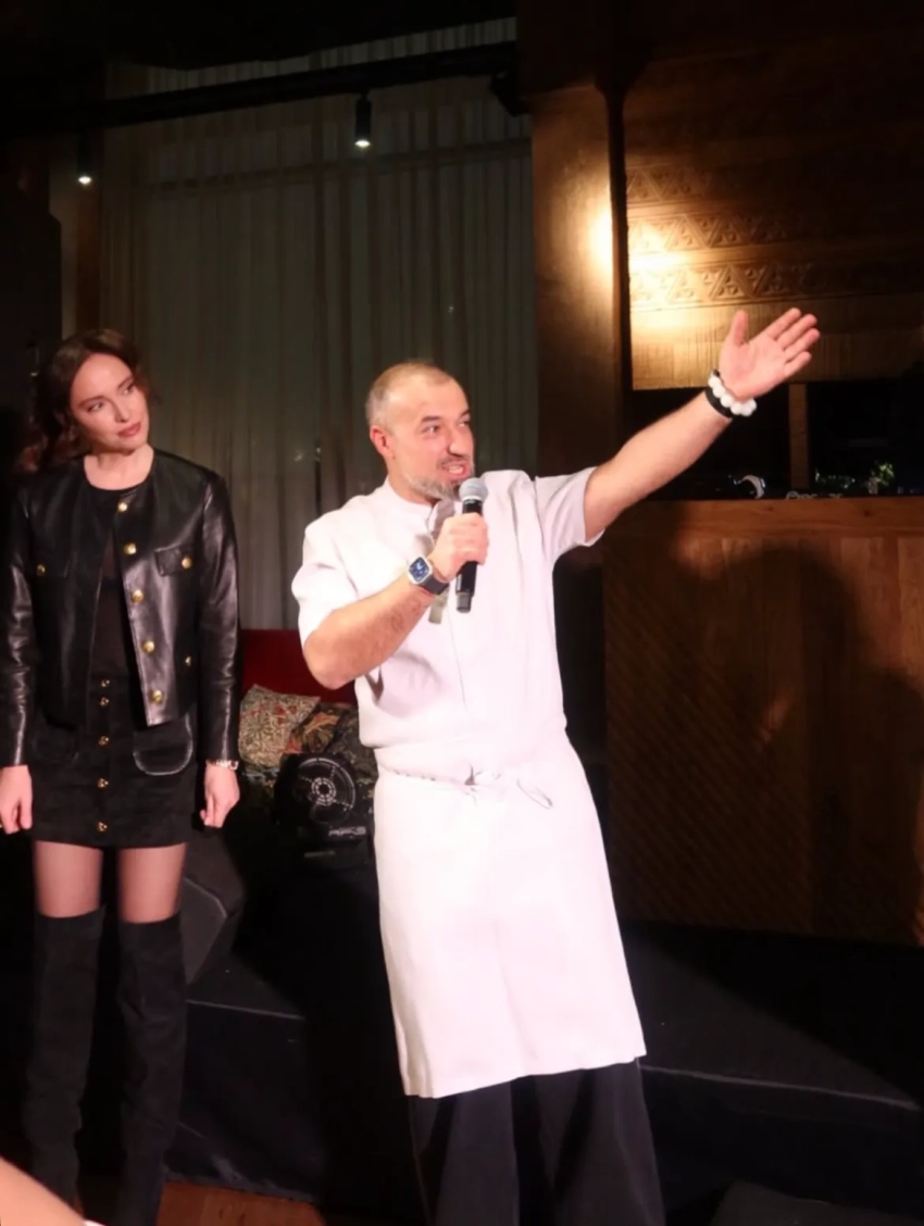 Гостей вечера ждали праздничный ужин от шеф-повара Владимира Мухина, выступление группы "Фабрика" и масштабная вечеринка. В начале вечера, в честь открытия нового ресторана, Ирина Зарькова разбила тарелку о пол на удачу.