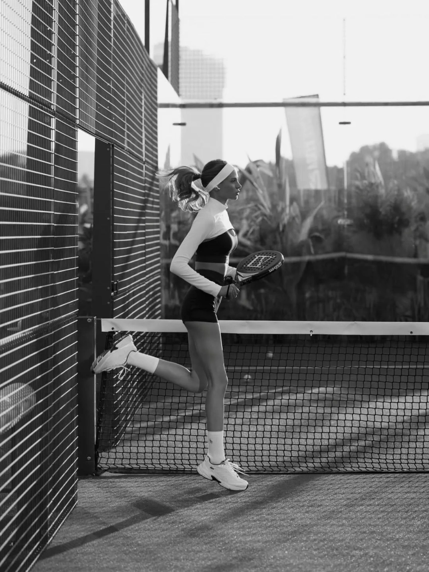 27-летняя Алеся Кафельникова снялась в новой фотосессии в Дубае. На снимках модель и дочь звезды тенниса Евгения Кафельникова позирует на корте в образах теннисистки в съёмке для падел-клуба Casa Padel.