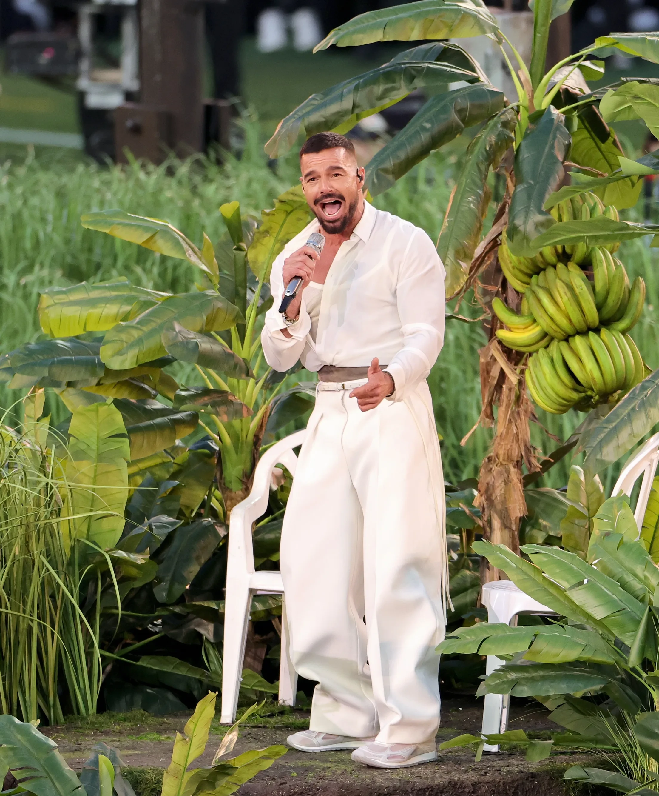 Machine Gun Kelly (Колсон Бэйкер)Открыла матч группа Green Day, а во время выступления триумфатора "Грэмми" и хедлайнера Суперкубка Bad Bunny (в образе Zara) на сцену также вышли Леди Гага и Рики Мартин. Bad Bunny поёт исключительно на испанском языке, а его номер стал данью латиноамериканской культуре. Также во время выступления певца поженилась реальная пара. Поклонники Bad Bunny ранее пригласили его на свою свадьбу, а он предложил им пожениться прямо во время Суперкубка. Как отмечают журналисты, Дональд Трамп назвал выступление артиста (который не поддерживает президента США) худшим в истории, а победу в финале Суперкубка одержала команда "Сиэтл Сихокс".