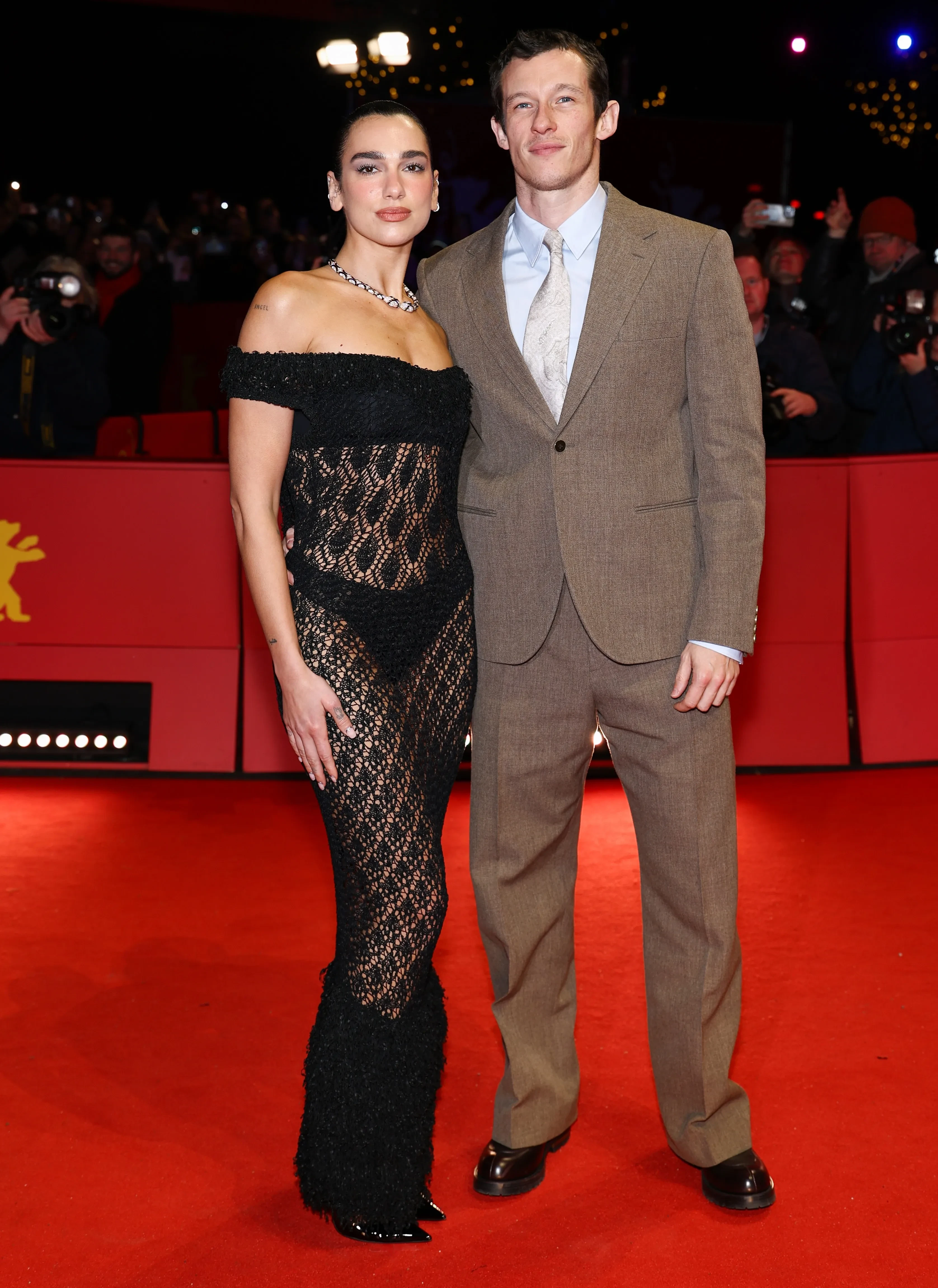 30-летняя Дуа Липа позировала в чёрном прозрачном платье Chanel, а 36-летний Каллум Тёрнер, с которым певица помолвлена больше года, надел коричневый костюм с галстуком. Памела Андерсон пришла, как обычно, без макияжа и в платье Carolina Herrera.