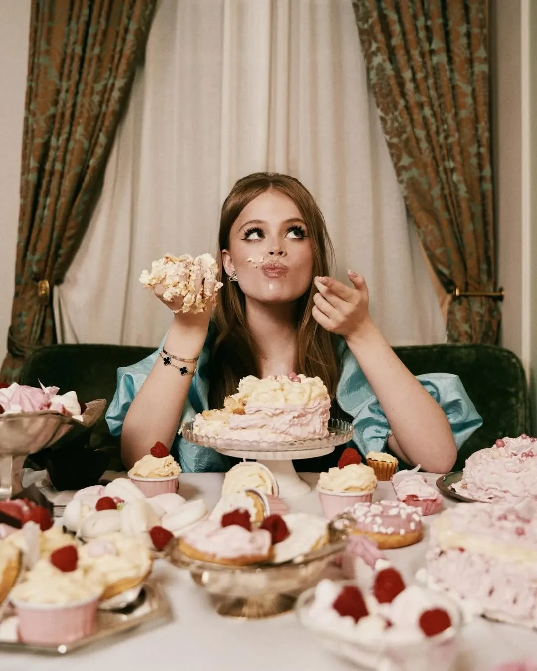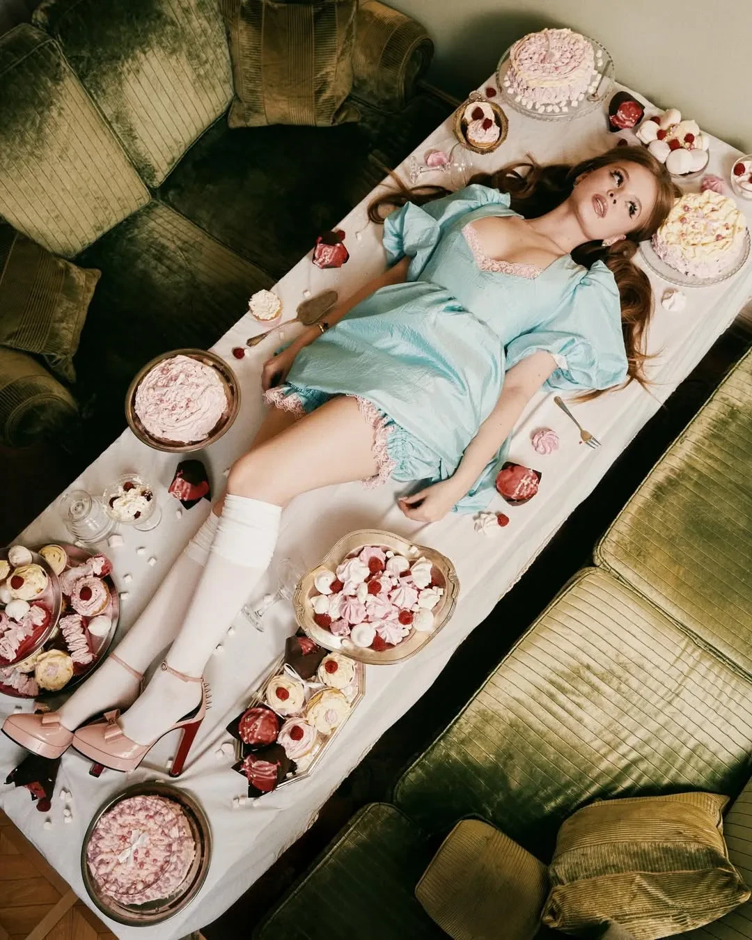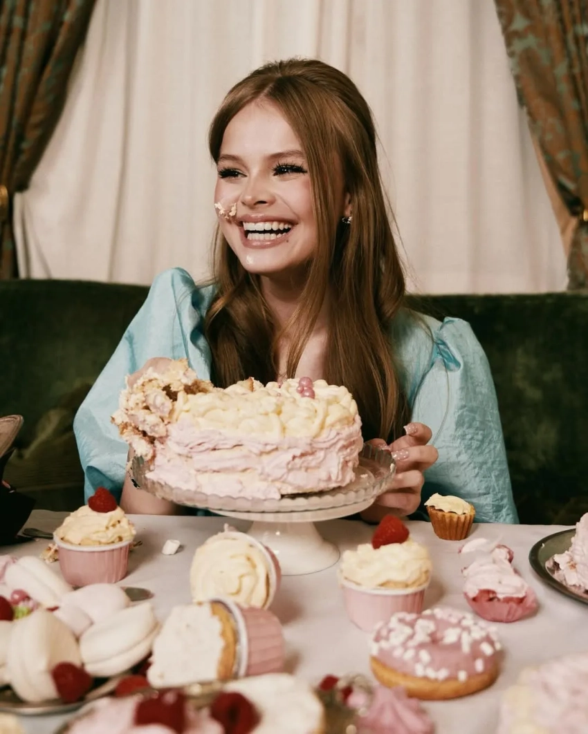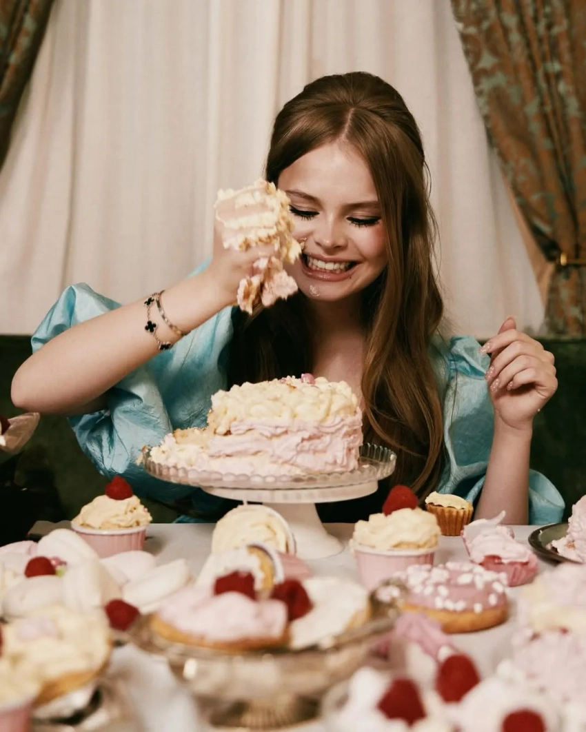 Милана Маирко (настоящая фамилия звезды тинейджеров) в мини-платье с декольте попозировала, лёжа на столе в окружении тортов и пирожных. "Сладкие 16", — подписала она кадры.