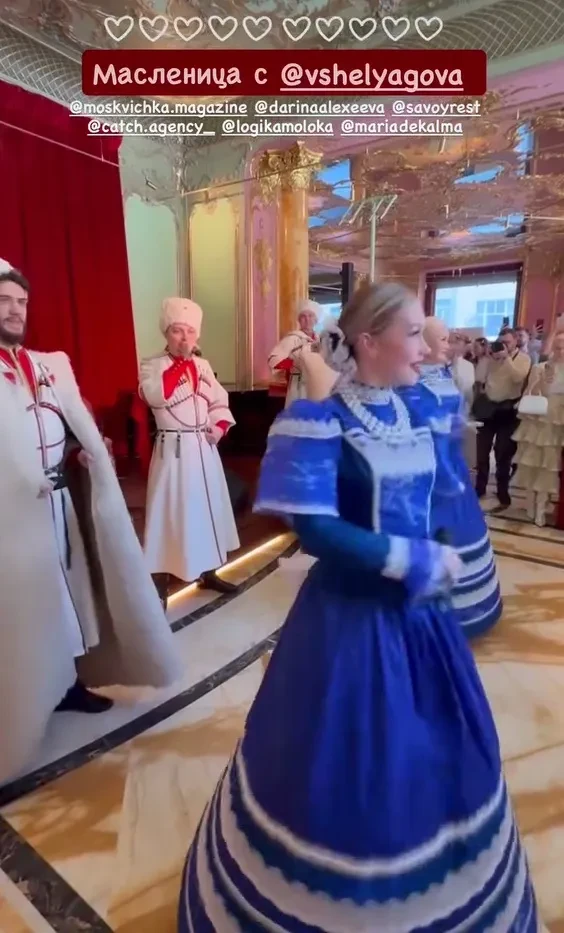 Блины, казачий хор и "жёлтый" дресс-код: Яна Рудковская, Андрей Малахов, Кристина Потупчик на Масленице Виктории Шеляговой в Savoy