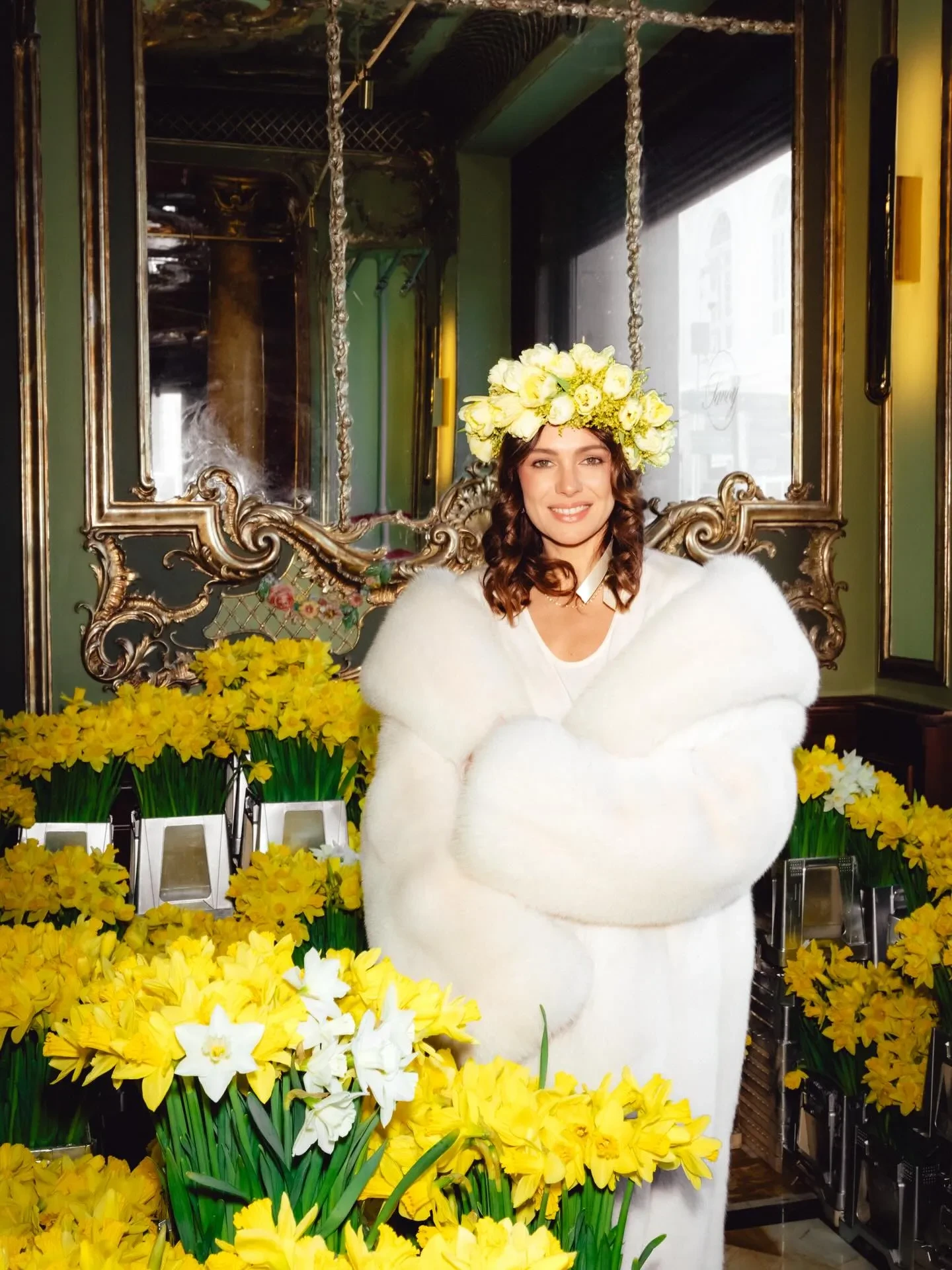 Праздничным дресс-кодом стали образы в жёлто-белой цветовой гамме, напоминающей о нарциссах, которыми было украшено всё пространство. Столы ломились от угощений: наряду с традиционными блинами и оладьями присутствующих угощали пирожками с мясом и капустой, соленьями, шоколадными конфетами и петушками на палочке, которые предлагали запивать травяным чаем и настойками.