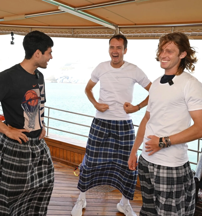 Даниил МедведевКарлос Алькарас, Даниил Медведев и Андрей РублёвЯнник СиннерЯнник Синнер, Андрей Рублёв, Даниил Медведев и Карлос АлькарасКарлос АлькарасДаниил Медведев, Карлос Алькарас, Янник Синнер и Андрей РублёвКарлос Алькарас, Даниил Медведев и Андрей РублёвКарлос Алькарас, Даниил Медведев, Андрей Рублёв и Янник СиннерРанее в сети обсуждали "любовный скандал" в теннисе: модель Sports Illustrated Брукс Надер, по слухам, одновременно встречалась с Янником Синнером и Карлосом Алькарасом. Впрочем, никто из участников предполагаемого любовного треугольника так и не прокомментировал сплетни.