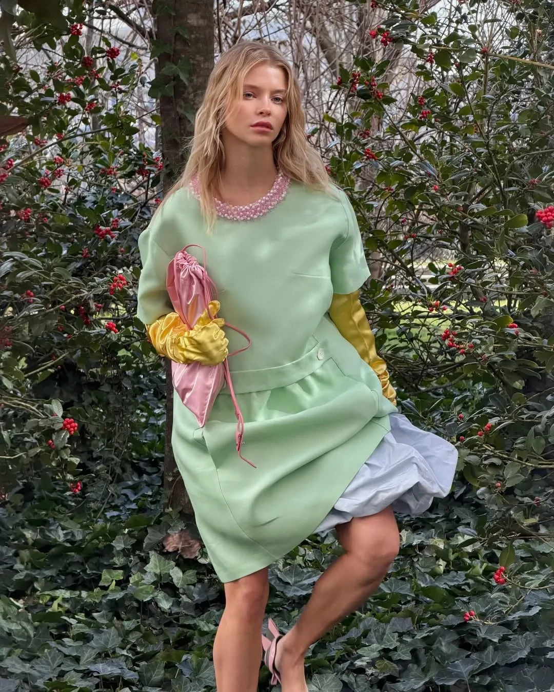 Блогерша Алла Брулетова пришла на показ Moschino в"мешке из-под картошки" и выгуляла яркие образы на других шоу, включая Marni. На показ этого бренда пришла и Ксения Шипилова. Также она посетила показ Enfants Riches Deprimes в Париже и примерила коллекцию Versace.