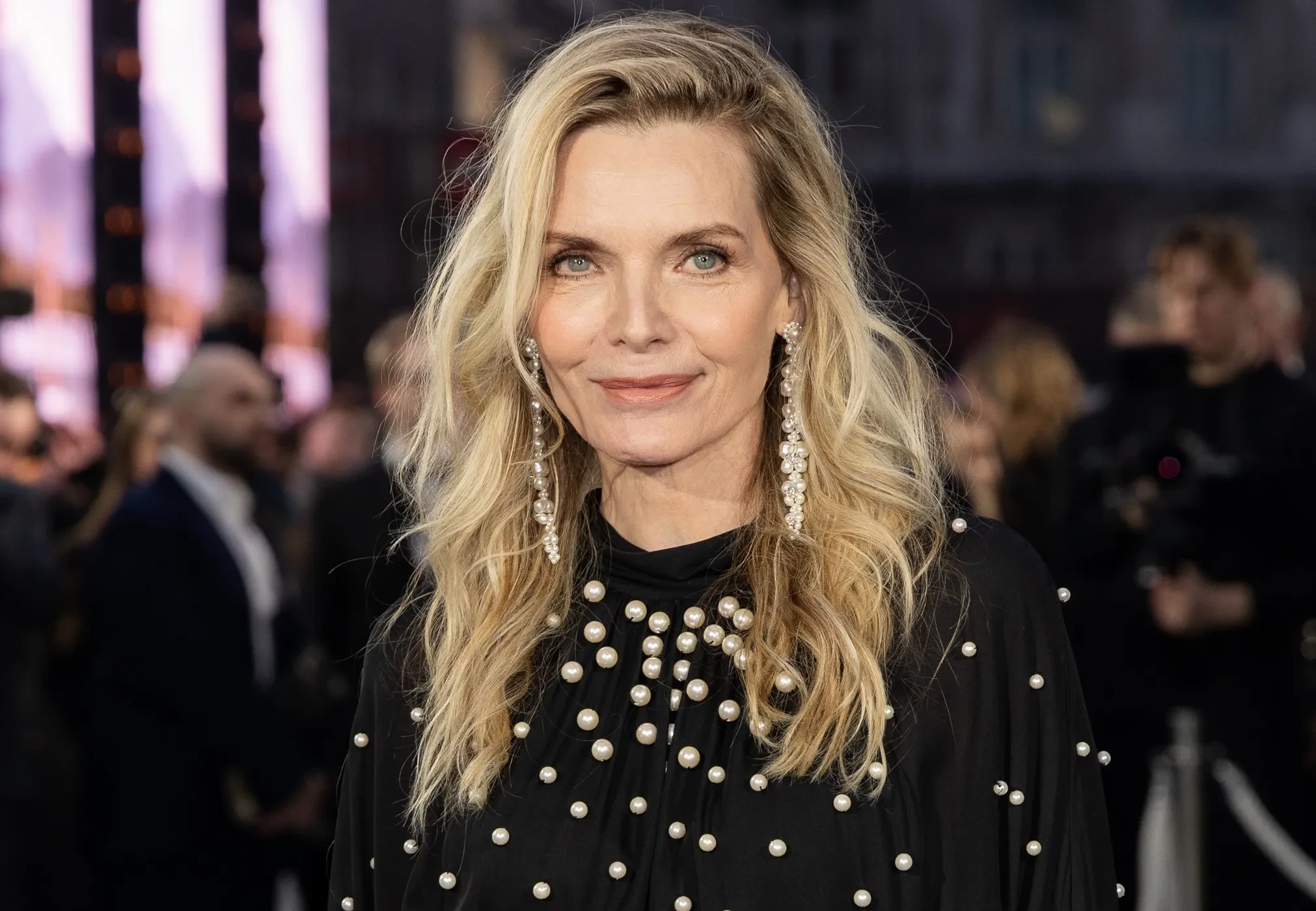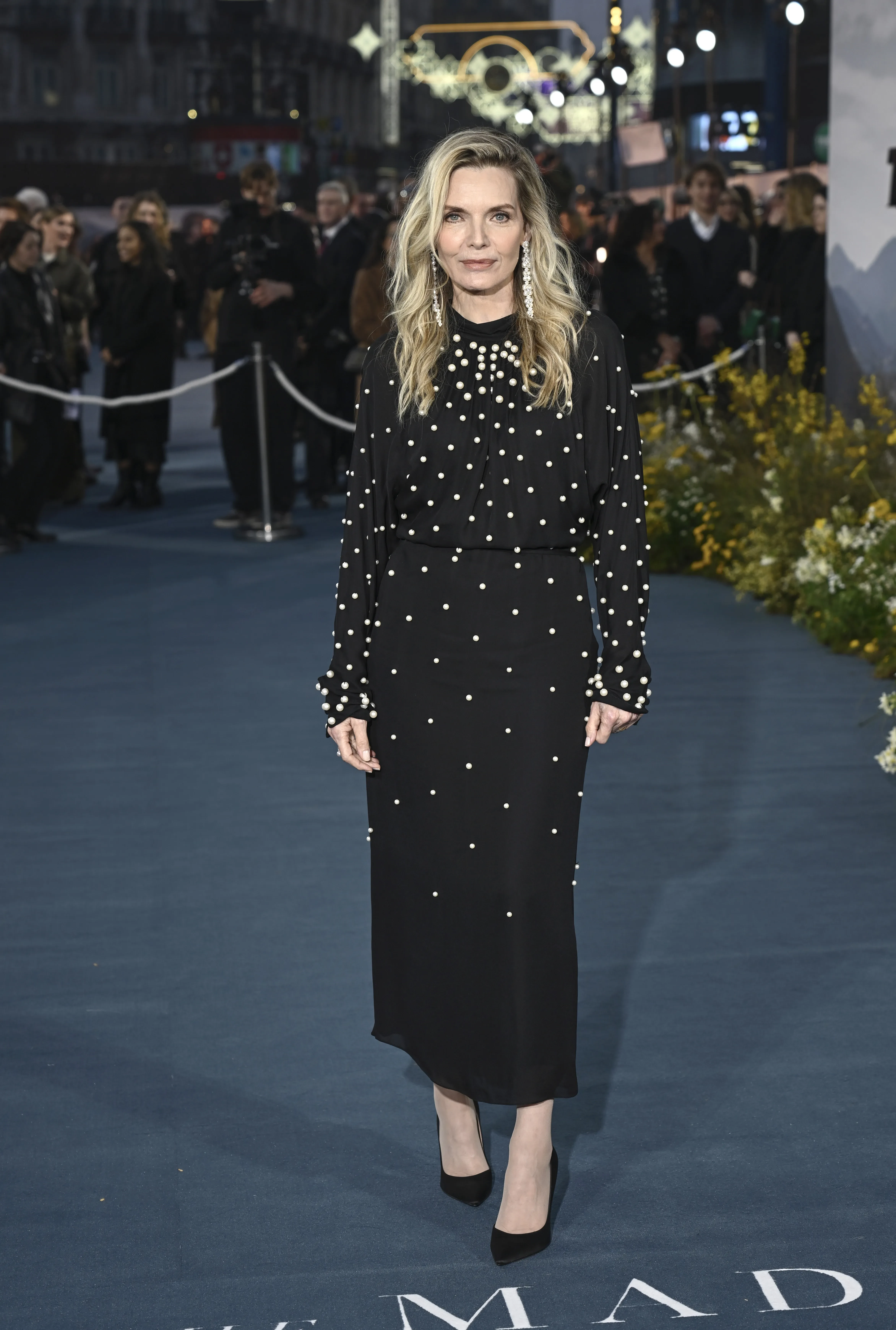 В Лондоне состоялась премьера сериала "Река Мадисон" с Мишель Пфайффер в главной роли. 67-летняя актриса лично посетила красную дорожку вечера, выбрав для выхода чёрное платье от Oscar de la Renta, украшенное жемчугом.