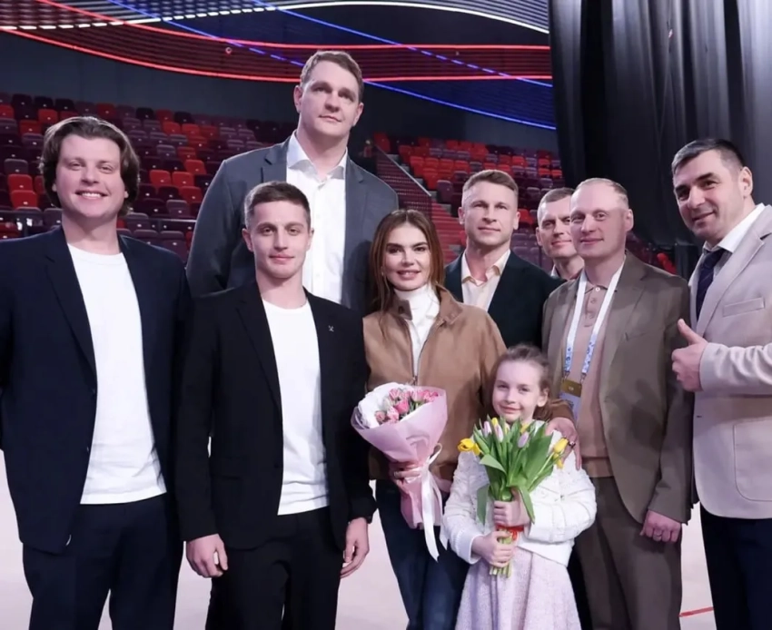 42-летняя олимпийская чемпионка появилась перед участниками соревнований и гостями в белой водолазке, коричневом бомбере и джинсах. Кабаева поддержала воспитанниц своей академии "Небесная грация", которые приняли участие в чемпионате.