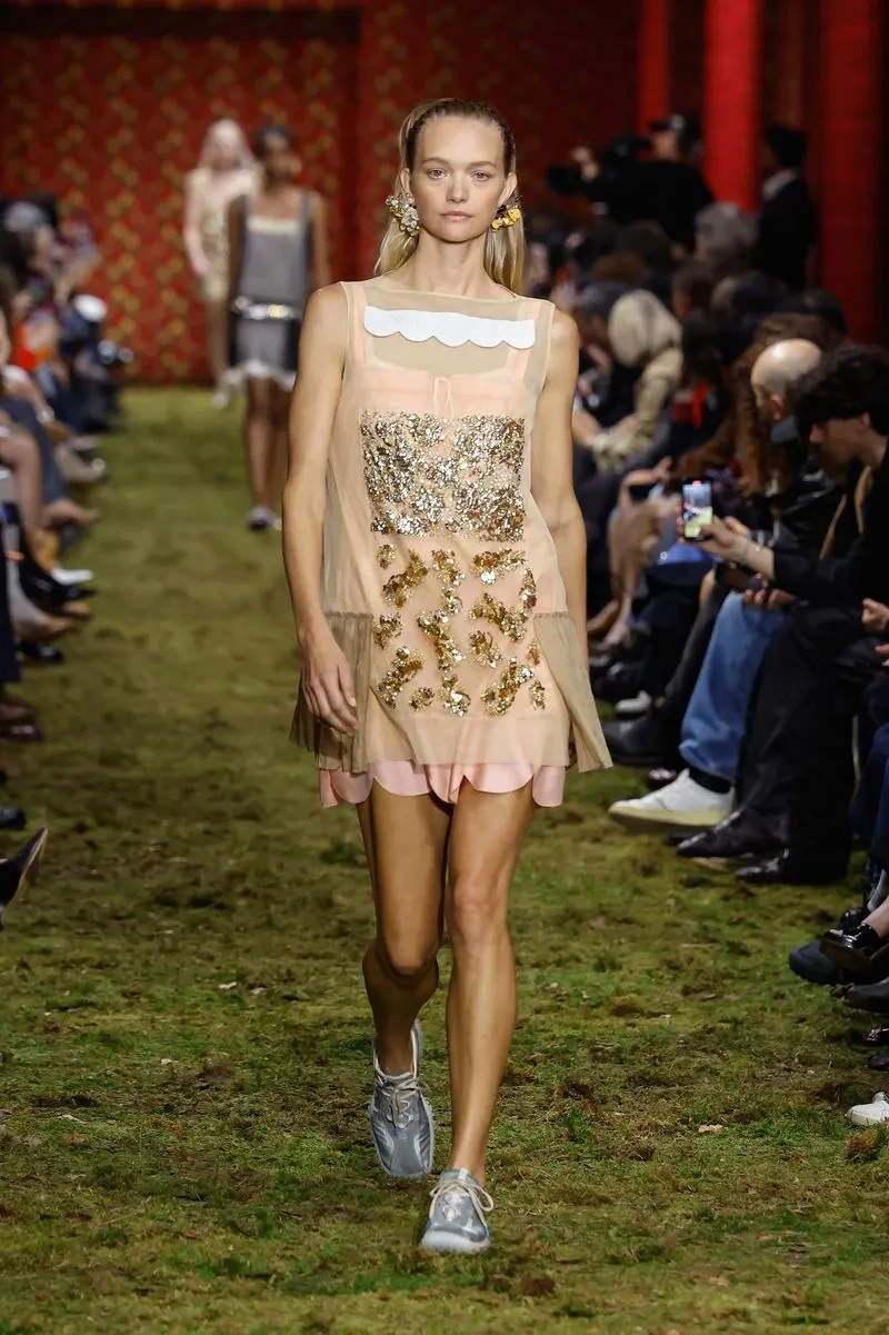 (Bryan Boy)Палома ЭльсессерПо подиуму на показе новой коллекции бренда Миуччи Прады Miu Miu по традиции прошлись несколько звёзд. Закрыла шоу 57-летняя Джиллиан Андерсон, а 51-летняя Хлоя Севиньи вышла на подиум для Miu Miu впервые за 30 лет