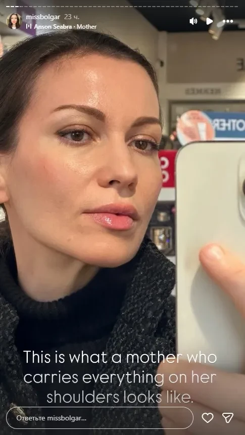 В сторис* Болгар также показала, что их с Дуровым дочь, так же как и сам он, увлекается программированием. Кроме того, она опубликовала селфи с собой, подписав его: "Вот как выглядит мать, которая несёт всё на своих плечах".