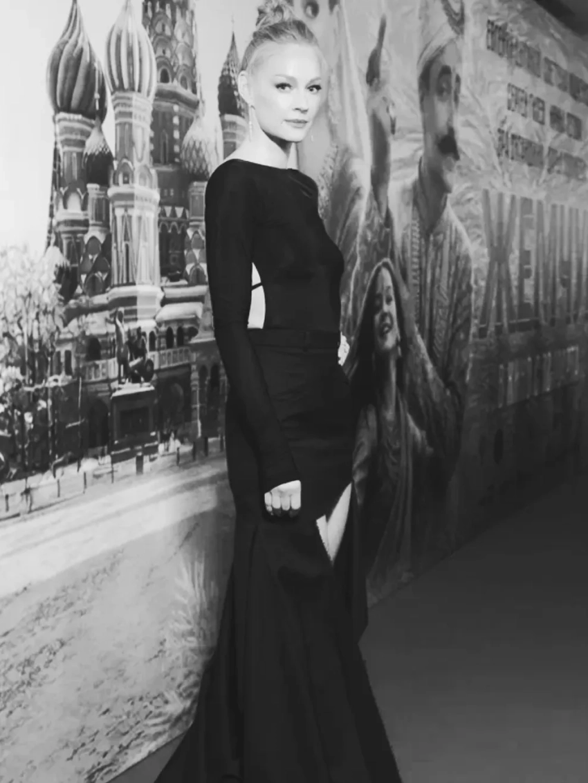43-летняя актриса, которая в последнее время редко появляется на публике, вышла в свет в чёрном полупрозрачном платье с длинным шлейфом и открытой спиной от бренда Александра Терехова Sashaverse. Образ завершали чёрные туфли на шпильке и комплект бриллиантовых украшений Cluev.