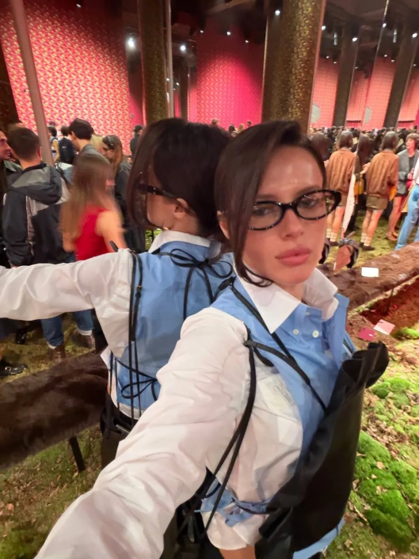 И действительно, в этом году на показе Miu Miu была замечена "свежая кровь" в лице российского блогера Лизы Барашик. Девушка на протяжении нескольких лет выстраивала образ в социальных сетях в эстетике бренда. Именно поэтому в интернете поклонники прозвали её Miu Miu girl. Помимо Барашик шоу также посетили Елена Перминова, Оксана Самойлова, Алла Брулетова и другие.