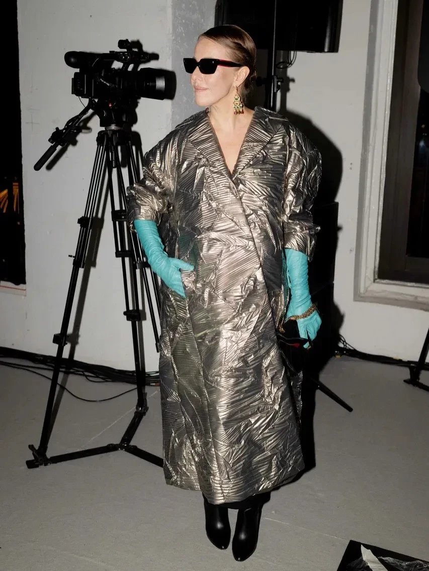 44-летняя Ксения Собчак пришла в металлизированном тренче и контрастных перчатках, а 37-летняя Мария Миногарова надела костюм из мужской коллекции Viva Vox, дополнив его массивными перчатками. 34-летняя актриса Юлия Хлынина позировала в чёрном платье с декольте и разрезом.