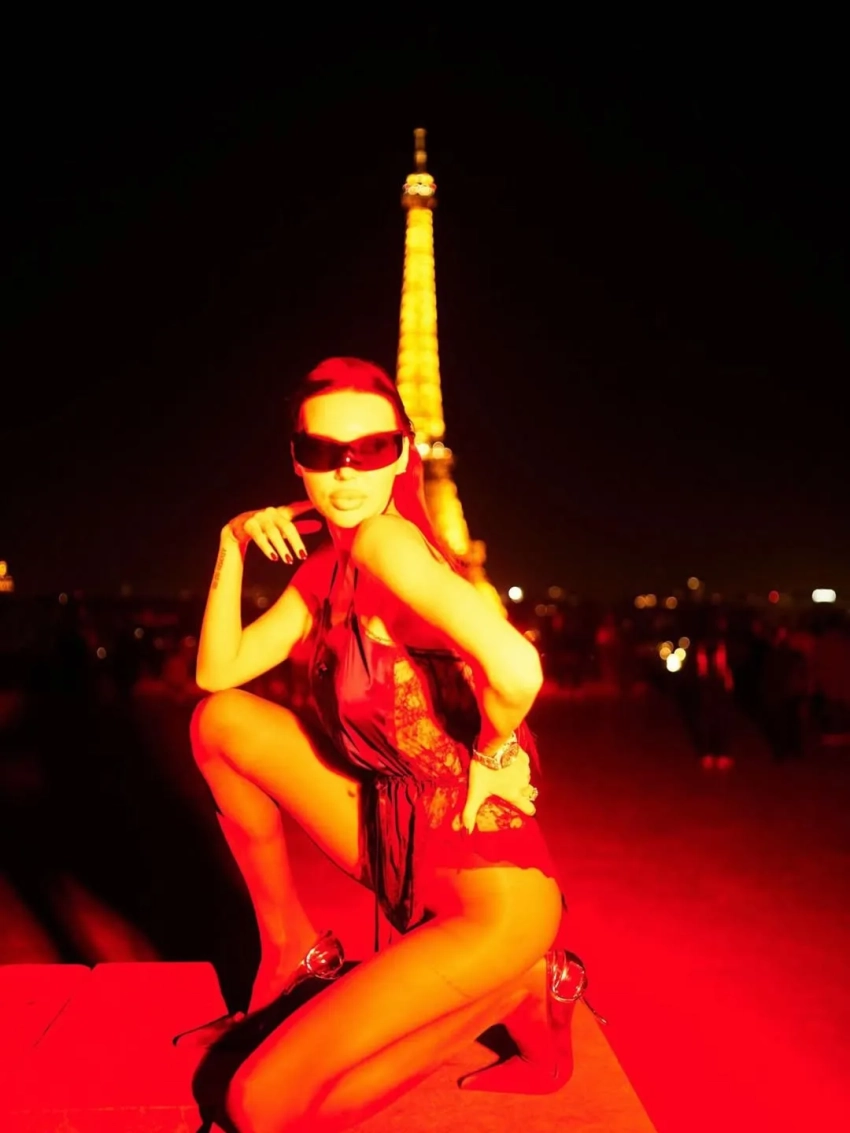 Самойлова посетила несколько модных показов и вечеринок, куда она ходила в образах Balenciaga, Schiaparelli, Saint Laurent и других брендов. На новых снимках мать четверых детей позирует в легинсах с косухой, кожаных микрошортах и корсете, кружевном боди, шубе с колготками, блестящем облегающем платье, нижнем белье и не только.