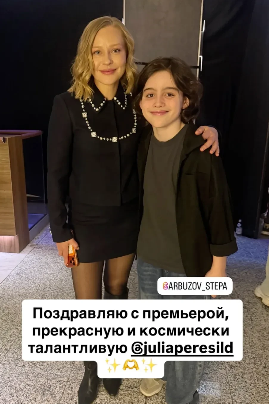 Бывшая жена Гарика Харламова Кристина Асмус пришла на премьеру в белой футболке, чёрных брюках и длинном тренче. 31-летняя Саша Бортич, которая снялась в фильме, надела мини-юбку с жакетом и позировала рядом с 28-летним бойфрендом. Юлия Пересильд тоже сыграла в ленте одну из ролей и вышла на дорожку в наряде total black.