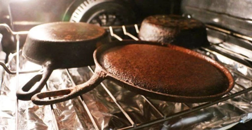 Чугунная посуда отличается особой прочностью, поэтому для нее подойдут более радикальные методы. Один из самых эффективных — термическая очистка.