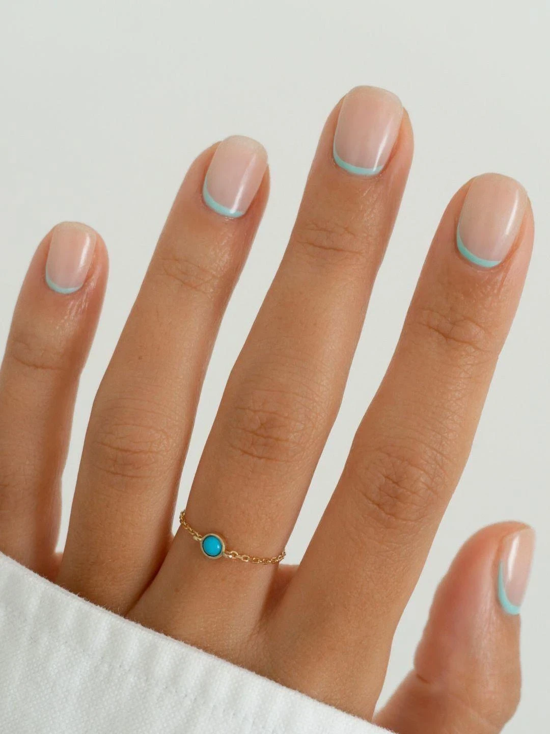 Выверенная линия у кутикулы подчеркивает форму ногтя, делает руки аккуратными. Лидируют нюдовые и светло-серые оттенки, можно добавить тонкий серебряный штрих.