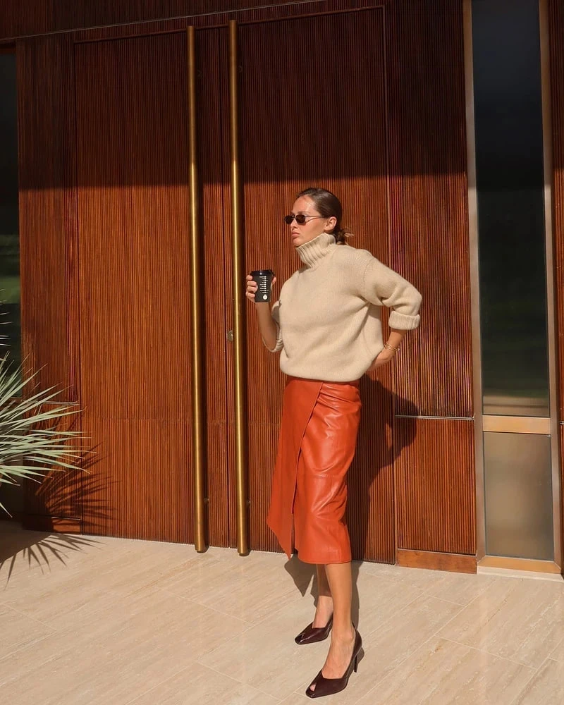 Монохромные образы тоже возможны. Красный с ног до головы смотрится эффектно, если сочетать разные оттенки одного цвета — например, алый с бордовым или малиновый с терракотовым.