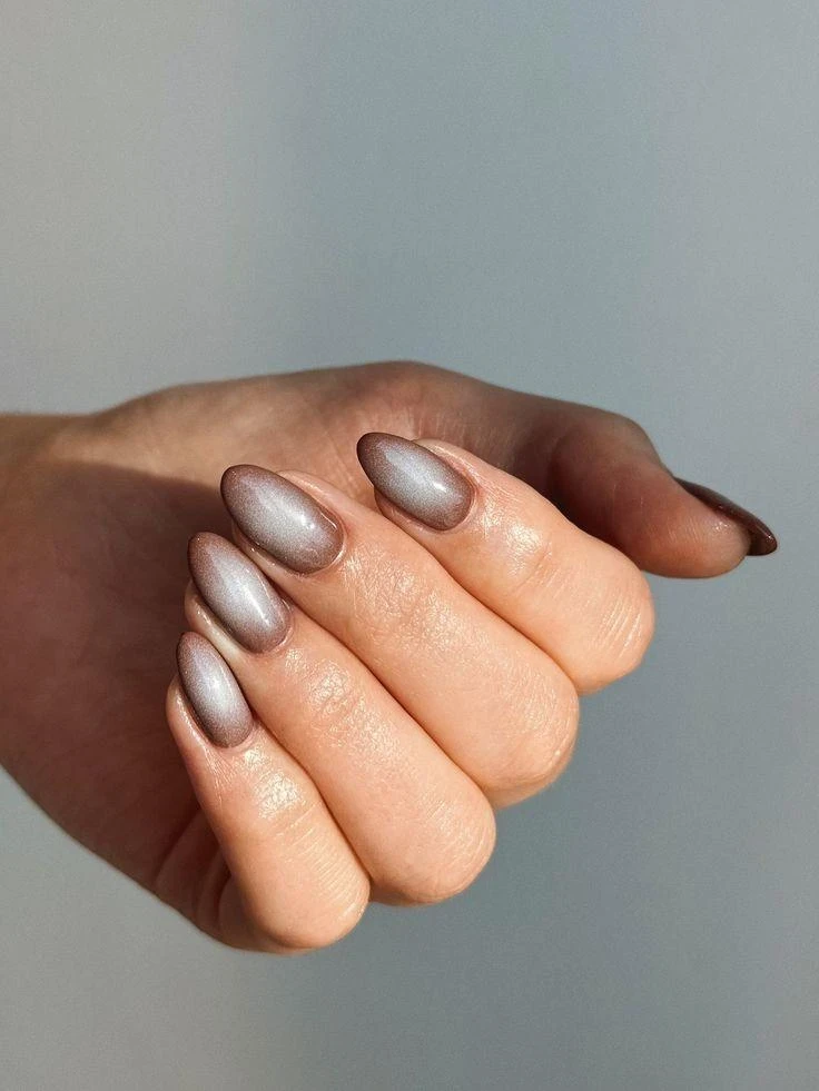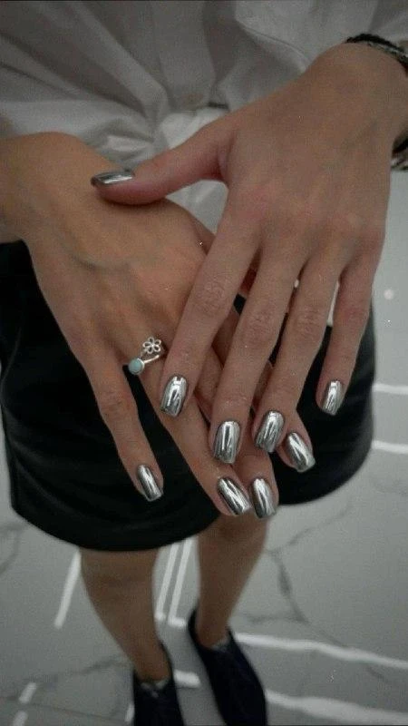 Серый с металлическим отливом напоминает город после дождя. Минималистичный и стильный вариант, который хорошо смотрится на коротких ногтях.
