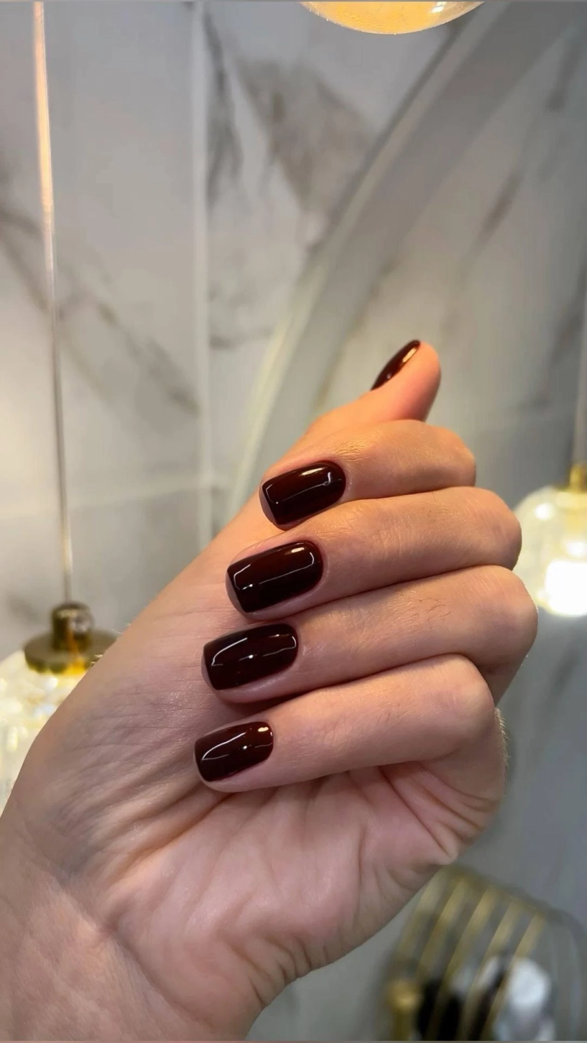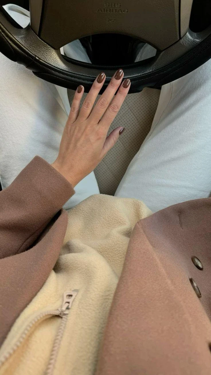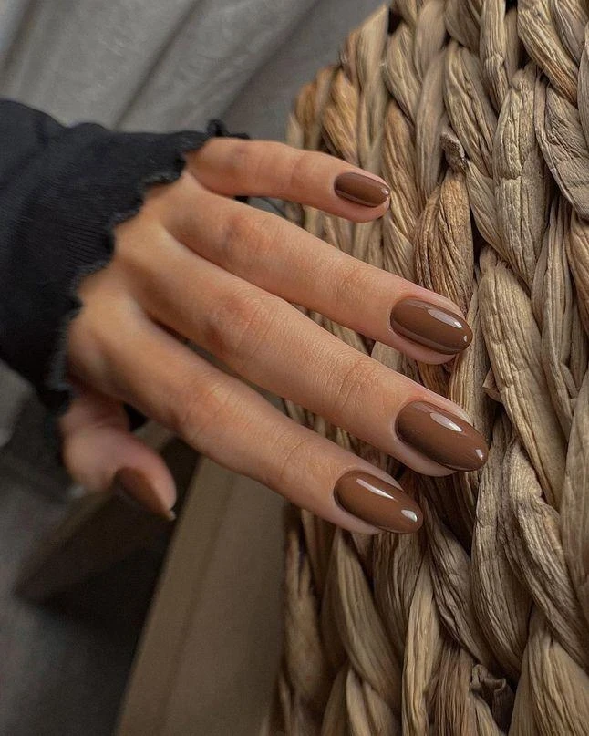 Цвет горького шоколада дарит ощущение уюта. Отличное решение для повседневного маникюра.