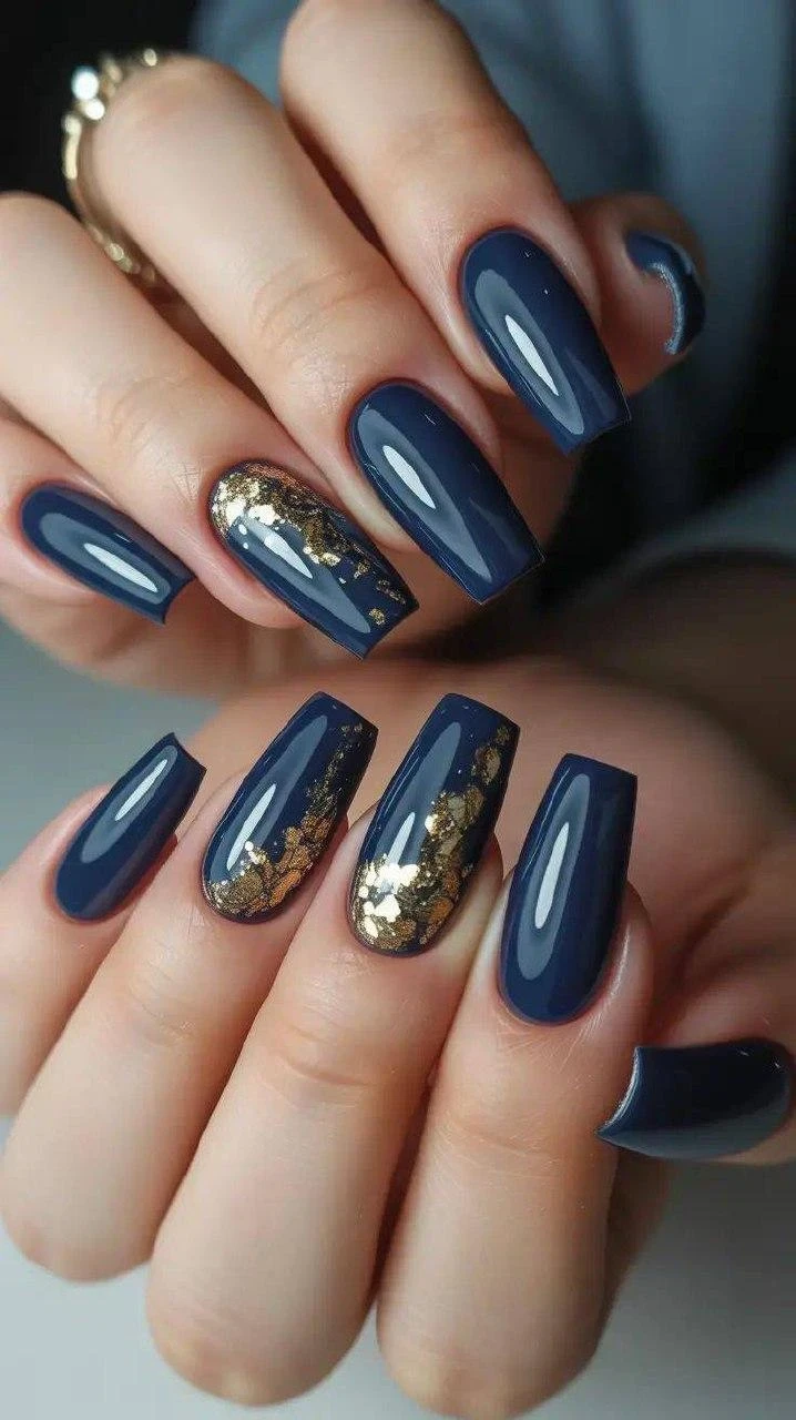 Сапфировый оттенок с золотыми акцентами выглядит по-королевски. Прекрасный вариант для особых случаев.