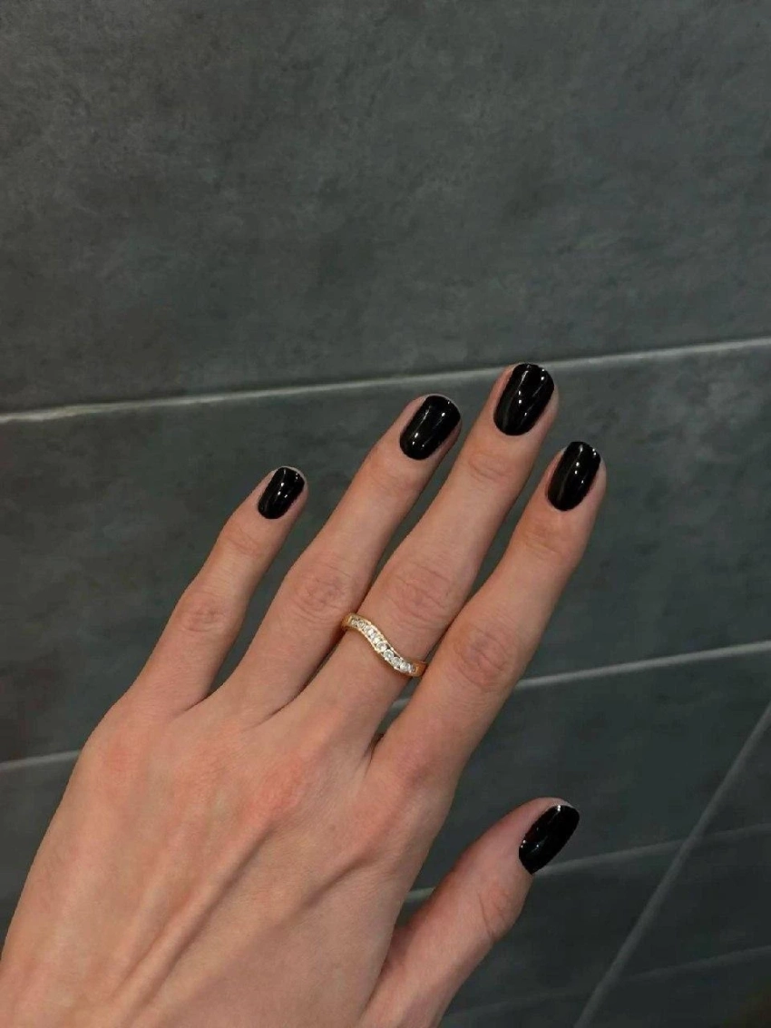 Глянцевый черный — вечная классика. Такой маникюр подходит и к строгому костюму, и к вечернему образу. Универсальное решение для тех, кто любит безупречность.