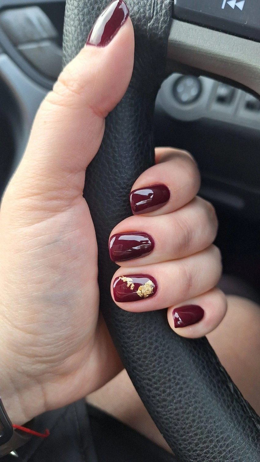 Глубокий бордо в сочетании с золотой фольгой или полосками превращает ногти в произведение искусства. Отличное решение для праздничных мероприятий.