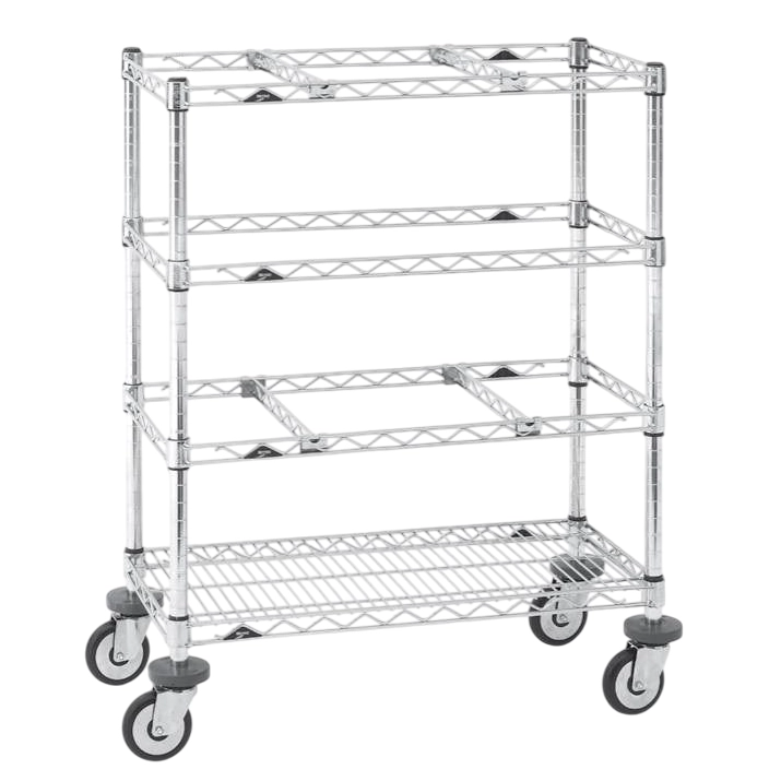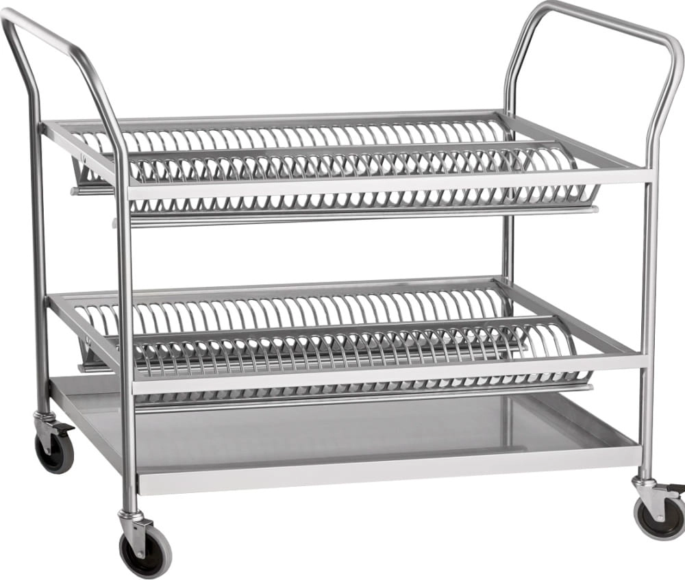Одноярусные тележки удобны для сбора грязной посуды. Двух- и трехъярусные модели подходят для перевозки большого количества тарелок, подносов и стаканов.