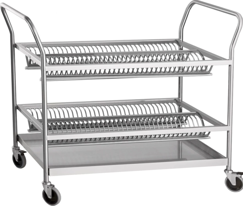Предназначены для транспортировки уже вымытой посуды. Обычно имеют бортики, ограничители или специальные направляющие, которые предотвращают смещение тарелок во время движения.