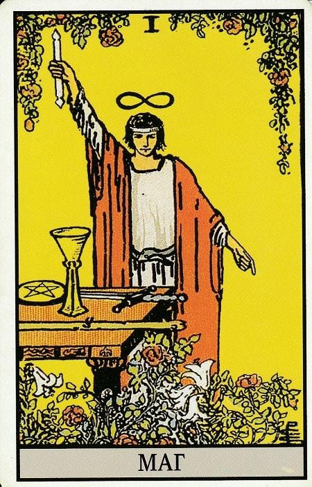 Карта Мага в Таро, отмеченная цифрой I, также известная как Жонглер, Колдун и Маг, представлена как старый мудрец, окруженный различными инструментами, символизирующими его знания, мудрость и посвящение. Маг обладает полным знанием Вселенной, прошлого, настоящего и будущего.