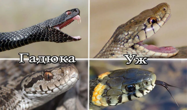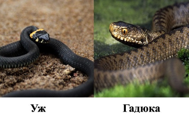 Чем отличается обыкновенный уж от ядовитой гадюки