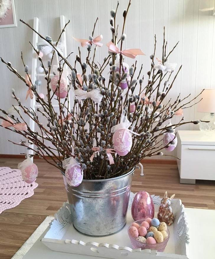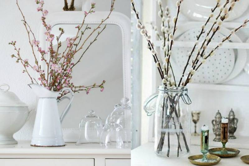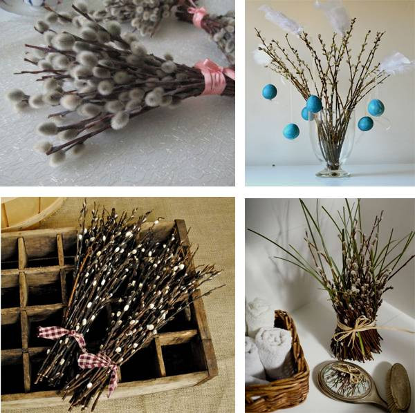 Можно еще использовать веточки, как декор перед Пасхой и сплести из них венок или небольшую корзину, или просто поставить оригинально в вазу и даже использовать для сервировки пасхального обеденного стола.