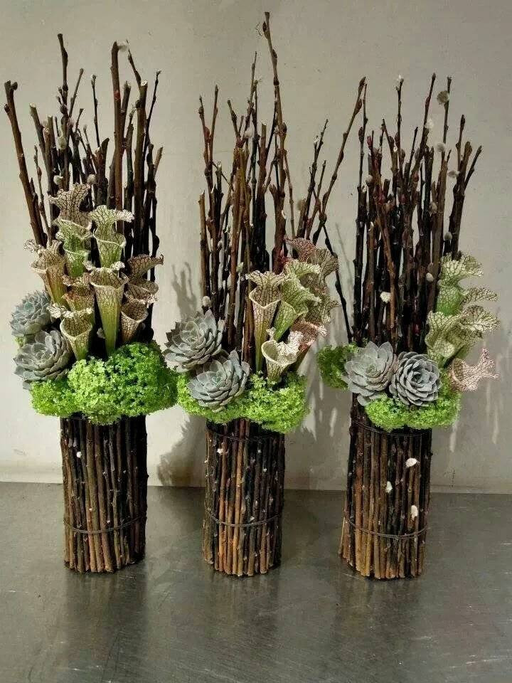 Один из самых простых и популярных способов украшения – это использование веточек в декоре, а точнее добавить в букет цветов, собранный своими руками.