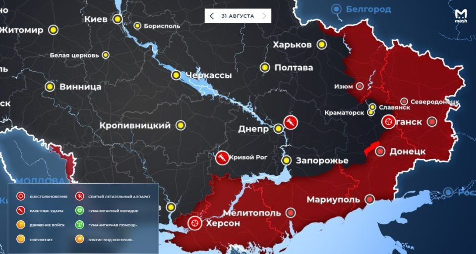Новая карта боевых действий на Украине сегодня, 31 августа 2022 года: актуальные данные