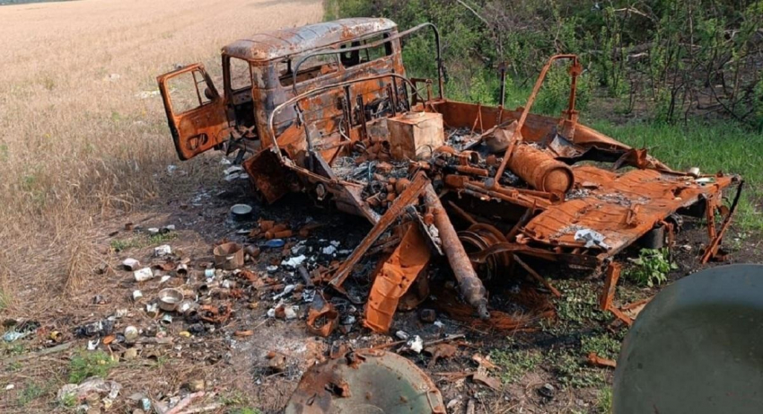 Военкоры «Русской весны» показали работу алтайских артиллеристов из отряда «Отважные» в ДНР. В районе Белогоровки на Северском направлении они сняли сожженную технику ВСУ, которую побросали боевики.